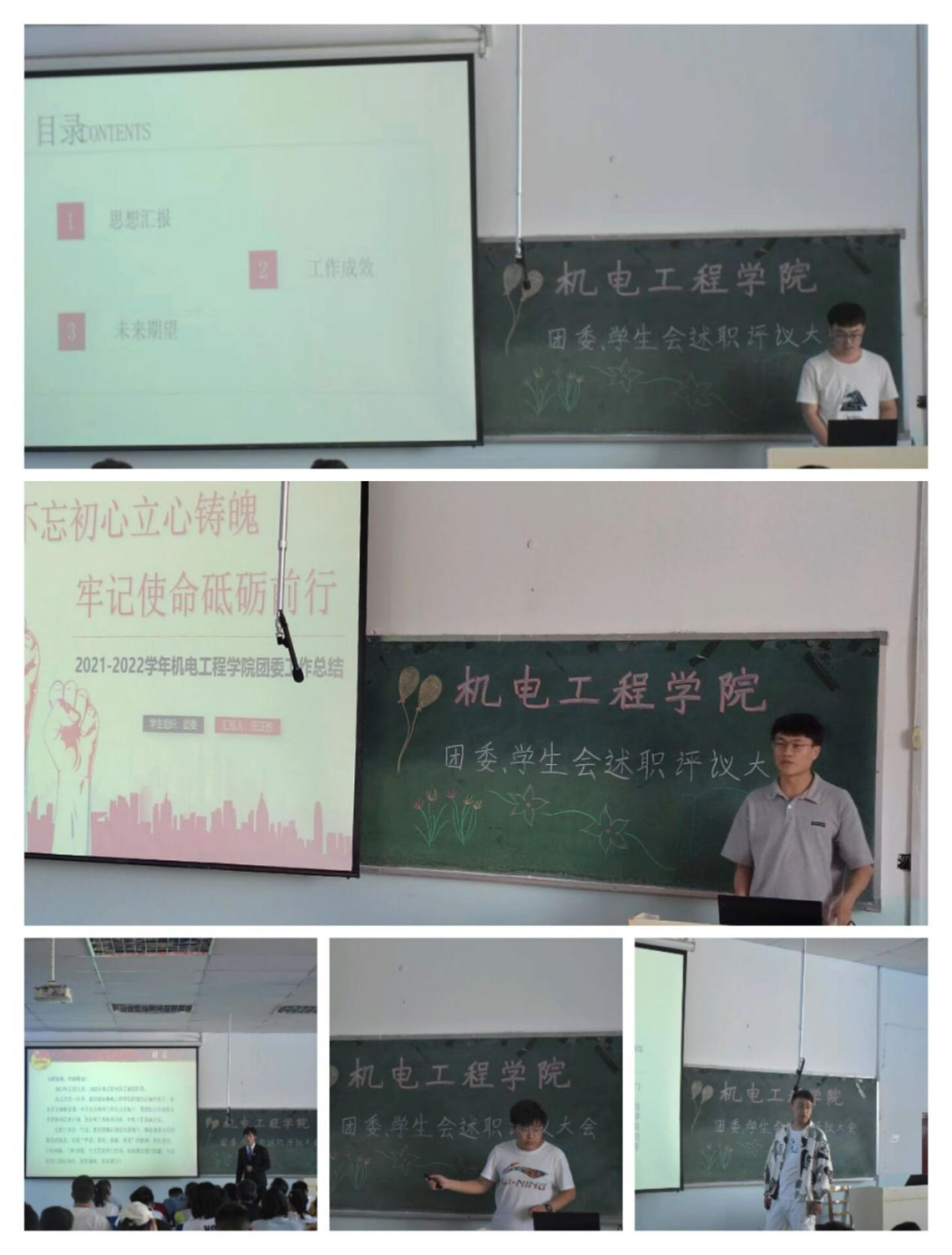 本次述职评议会全面系统地回顾了机电工程学院2021年度团委、学生会工作情况,扎实推进了学院学生会全面深化改革工作,增强了学院共青团组织对广大青年学生的凝聚力、组织力、号召力。新起点,新征程,新突破,新作为。机电工程学院团委将团结起来,不忘初心,牢记使命,充分发挥思想引领和服务职能,开启我院团学工作的新篇章,为学校培养德智体美劳全面发展的社会主义建设者和接班人作出我们应有的贡献!