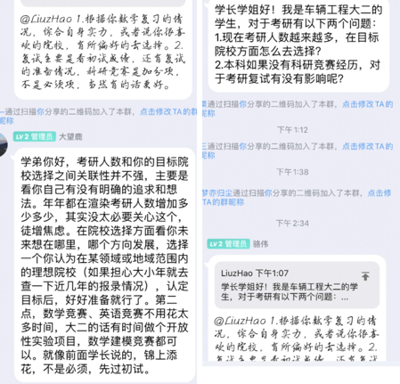 为解答同学们在考研准备方面的疑惑,进一步加增强学生考研自信心以及深入了解学校保研,在交流会结束之后建立了考研解惑群,进一步帮助学生答疑解惑,切实发挥学生会作为学校学院联系学生的桥梁和纽带作用,用实际行动践行全心全意为同学服务的初心和使命。