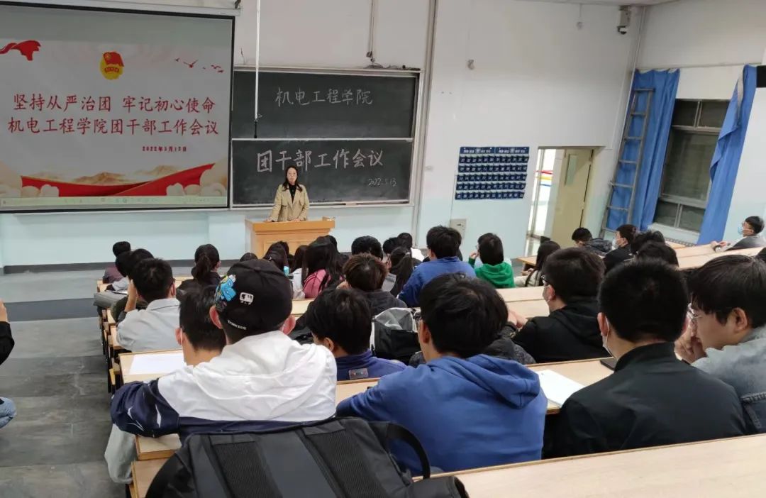 为增强共青团的引领力、组织力和服务力,引导各级团干部坚定理想信念、认真履职尽责,共同推进学院团委工作的顺利开展,为党的青年工作作出贡献。2022年5月13日12:20,机电工程学院在七教2403教室召开了全体团干部工作会议,本科生团支部、研究生团支部全体团支书以及学院团委组织部相关负责人参加了会议,会议由学院团委书记胡瑶主持。