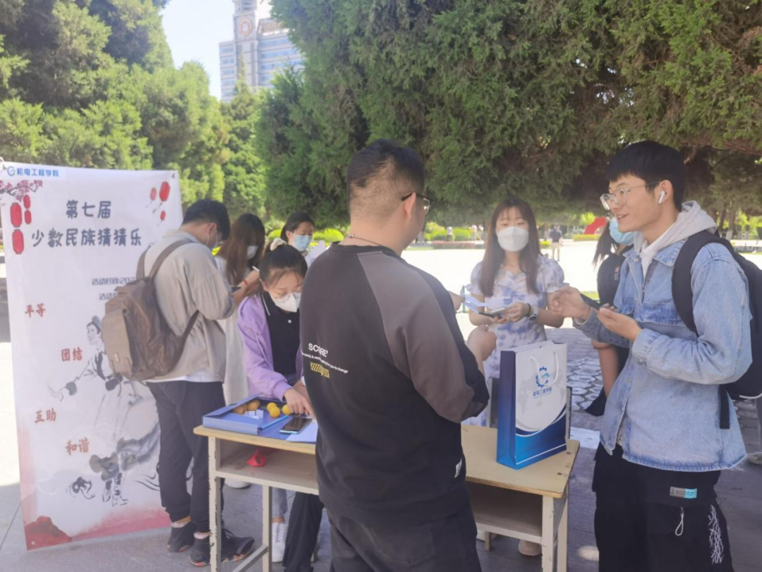在甘肃省第19个民族团结进步宣传月活动开展之即,为深入学习习近平总书记关于加强和改进民族工作的重要思想,机电工程学院团委结合学校少数民族学生的实际情况,积极探索民族团结进步创建进校园的新模式,引导各族学生铸牢中华民族共同体意识,促进各民族共同团结奋斗、共同繁荣发展。5月5日14:00时,机电工程学院学生会宣传部在图书馆前广场举办了第七届“少数民族猜猜乐”活动。