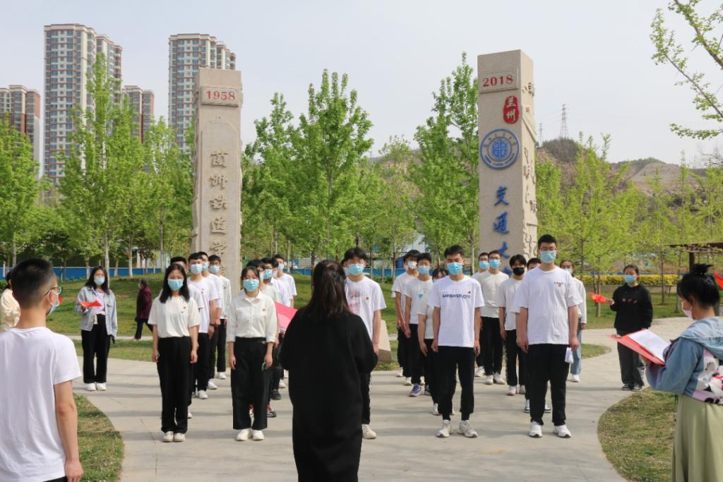 青年是国家的希望,青年是国家的栋梁。为提高广大团员先进意识,引导激励团员青年坚定中国特色社会主义理想信念,积极培育和践行社会主义核心价值观,切实加强共青团组织队伍建设和仪式教育。在喜迎二十大,建团100周年之际,机电工程学院于2022年4月24日在兰州交通大学和谐园校史柱旁举行了2022年新发展团员入团仪式。学院团委书记胡瑶,团学骨干、团员代表以及2022年度新发展团员共计30余人参加了入团仪式。