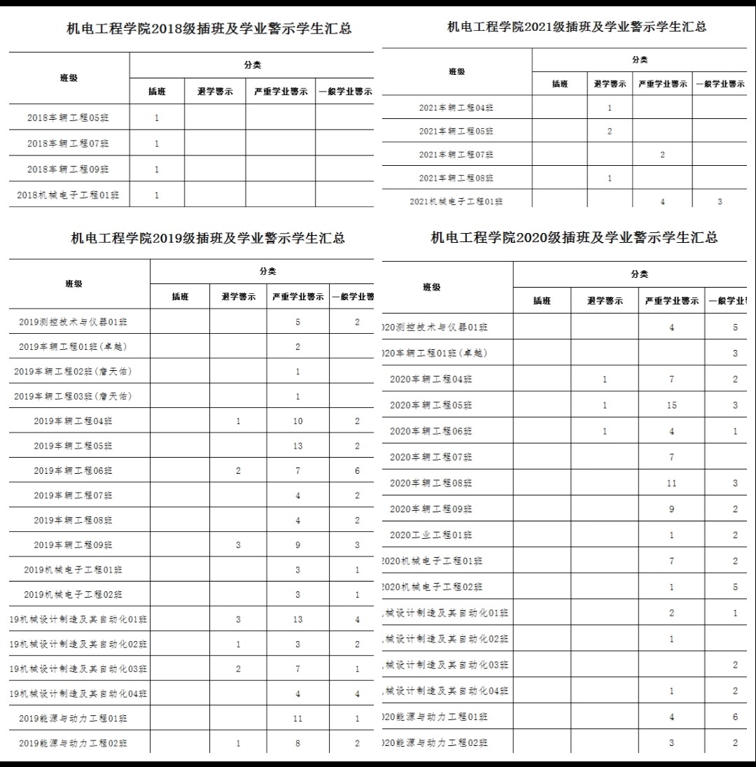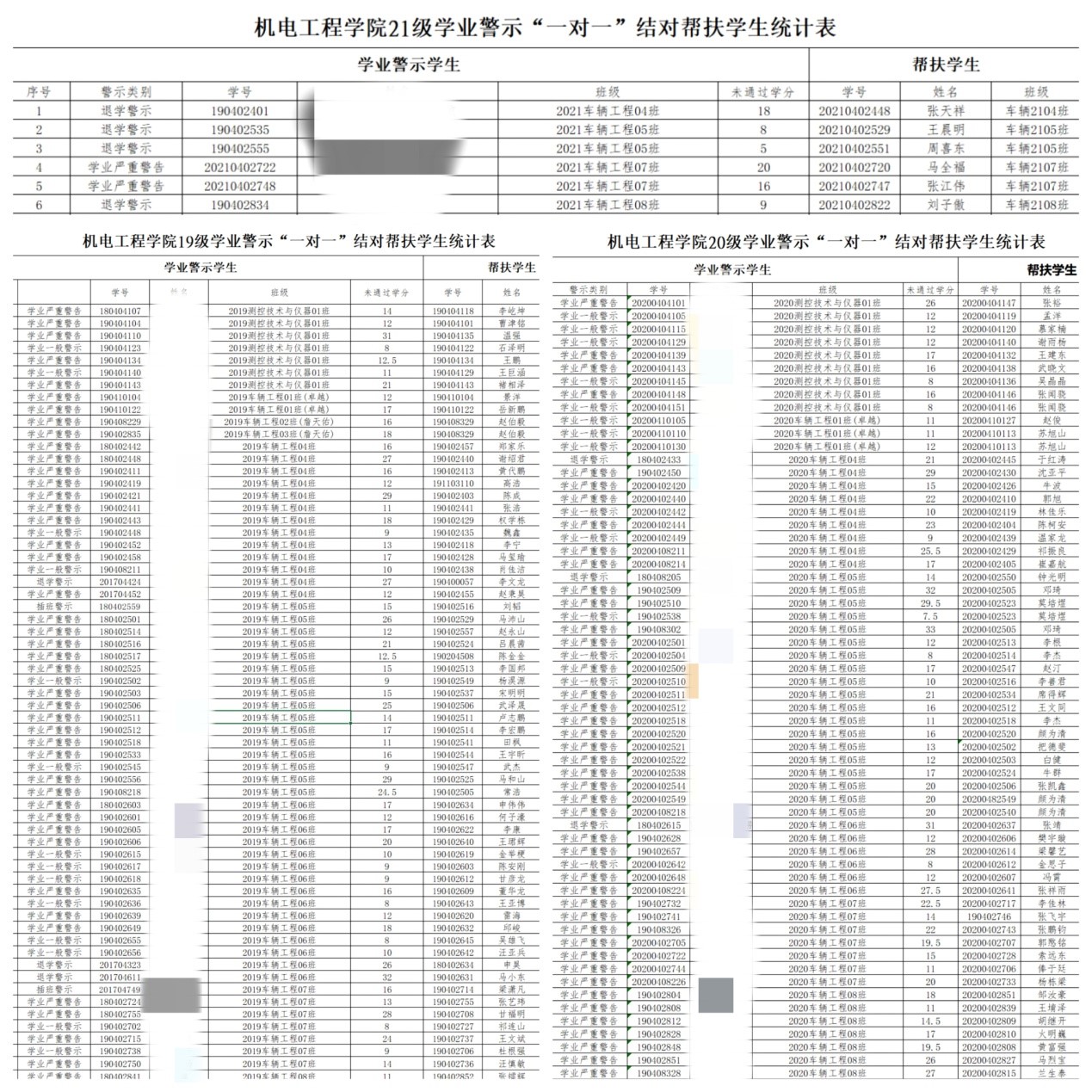 为进一步加强我院学风建设,全面构建全员全过程全方面育人格局,促进学生主动有效地学习和健康发展,尤其为学习困难受到学业警示学生群体提供必要帮助,引导学生端正学习态度,减少不及格率,提高结业率,机电工程学院开展了学生精准学业帮扶工作,制定了《机电工程学院学业警示“一帮一”结对帮扶制度》,通过有效的帮扶措施,学业警示学生由上学期的461人降为本学期的304人,157人走出了学业警示的队伍,学业帮扶初见成效。