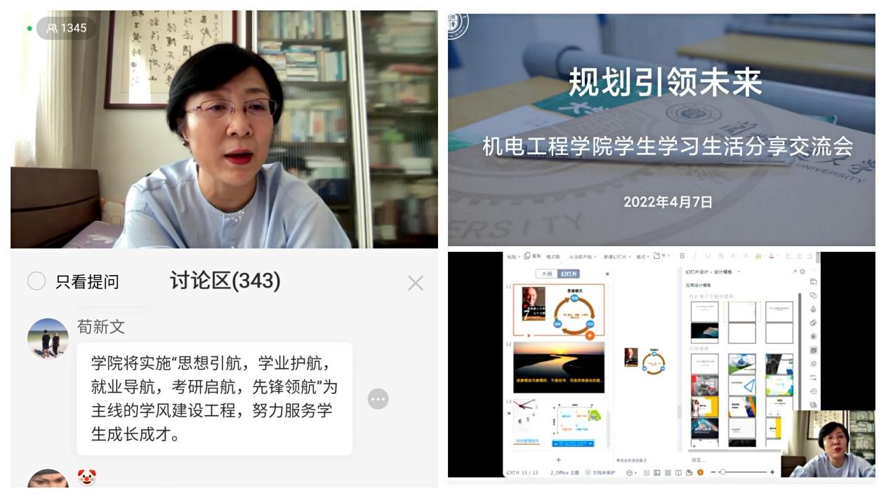 为了进一步促进我院学风建设,帮助2021级学生更好地适应丰富多彩的大学学习和生活,找准自身定位,做好未来规划,引领全面发展,4月7日下午3:30,机电工程学院通过小鹅通平台开展了以“规划引领未来”为主题的线上学习生活分享交流会,会议邀请了招生就业处就业管理科科长凌翔担任主讲,学院党委副书记、副院长荀新文,年级辅导员以及2021级全体学生参加了会议,会议由学生工作办公室主任张晓丽主持。