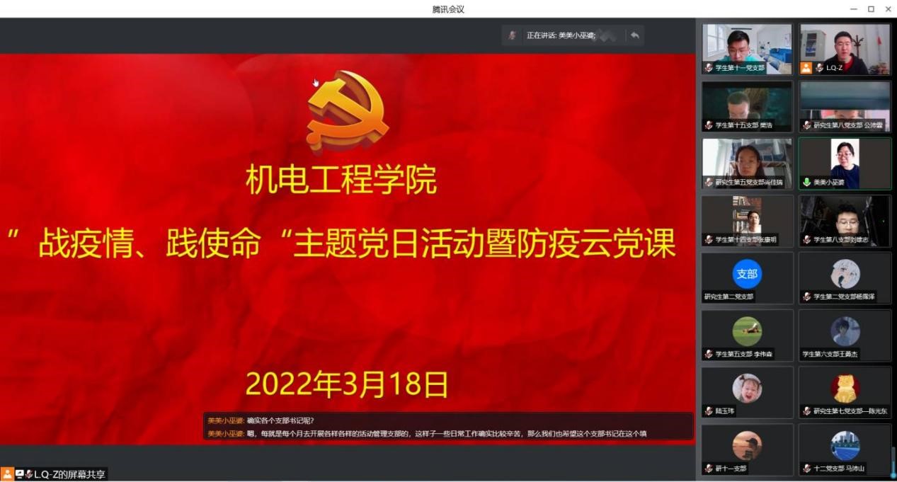 云党课,尤给力。学院党委组织开展了一次特殊的主题党日活动,全体党员通过网络平台参加了“战疫情、践使命”主题党日暨防疫云党课活动,课程形式新颖有趣,内容紧扣当下实际,大家有感而发,是一次很好的精神洗礼,进一步增强了党性修养和社会主义制度自豪感。