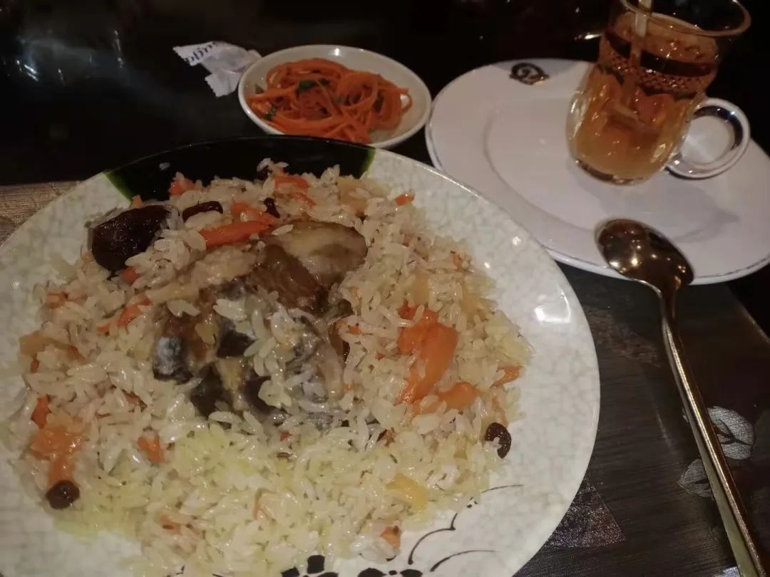 抓饭是新疆维吾尔族菜品,主要的原料是新鲜羊肉,胡萝卜、洋葱、清油、羊油和大米等等,是一种营养十分丰富的食品。抓饭具有色、味、香俱全的特点,很能引起人们的食欲。
