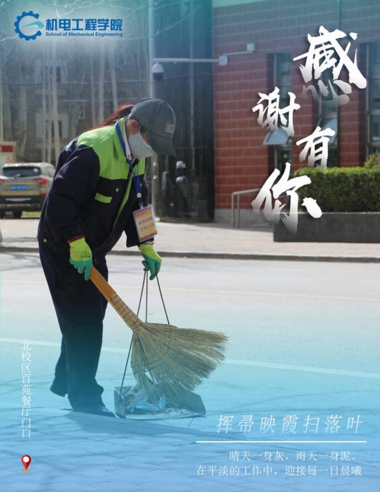 感谢有你,扫帚映霞扫落叶,用平淡迎接每一日晨曦