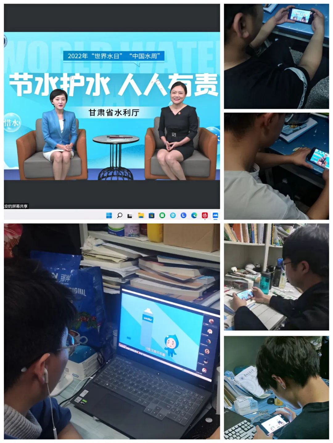 此次线上直播是2022年《公民节约用水行为规范》甘肃省主题宣传活动之一。甘肃省水利厅、省文明办、省发展改革委、省教育厅、省工信厅、省住建厅、省农业农村厅、省机关事务管理局、团省委和省妇联等十部门同时间联合启动线上直播。学院组织学生观看该直播,旨在引导广大学生懂得“节水护水、人人有责”“珍爱水资源、保护水环境”“生命之源、共同守护”的重要性,激发同学们的节水意识,从而实现“节水中国,你我同行”持续的宣传、传播与发力。通过观看直播同学们深刻认识到保护水资源的必要性、紧迫性和重要性,纷纷表示要形成节水、惜水、爱水、护水的良好习惯。