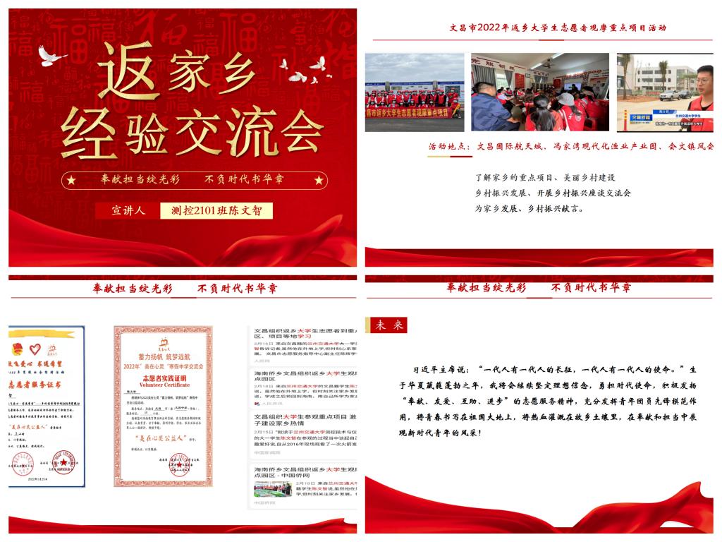 测控2101班陈文智说:生于华夏葳蕤蓬勃之年,我将会继续坚定理想信念,勇担时代使命,积极发扬“奉献、友爱、互助、进步”的志愿服务精神,充分发挥青年团员先锋模范作用,将青春书写在祖国大地上,将热血灌溉在故乡土壤里,在奉献和担当中展现新时代青年的风采!