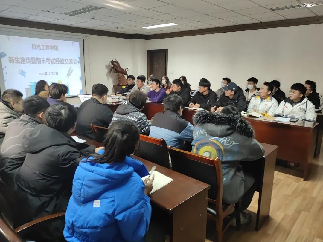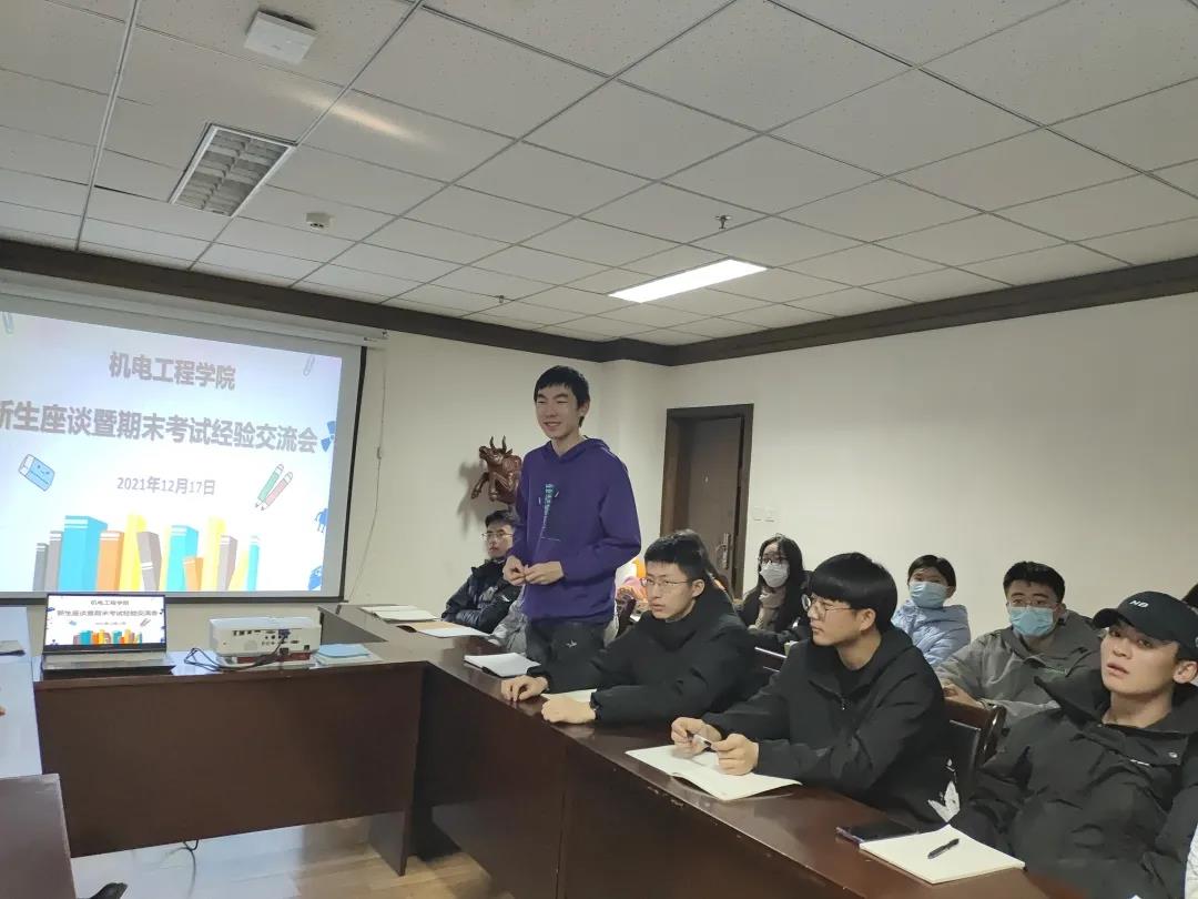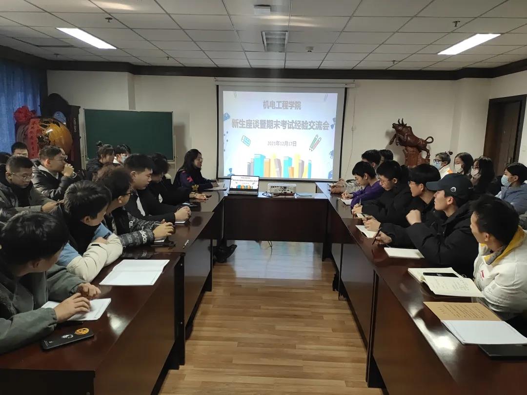期末考试即将来临,为了缓解大一学生考前的紧张情绪,了解本学期的思想、学习和生活状态,引导他们放好心态、认真复习,2021年12月17日,机电工程学院学生会召开了新生座谈暨期末考试经验交流会。学院团委书记胡瑶、学生会主席团成员、各部门负责人以及大一各班学生代表共计50余人参加了本次会议。