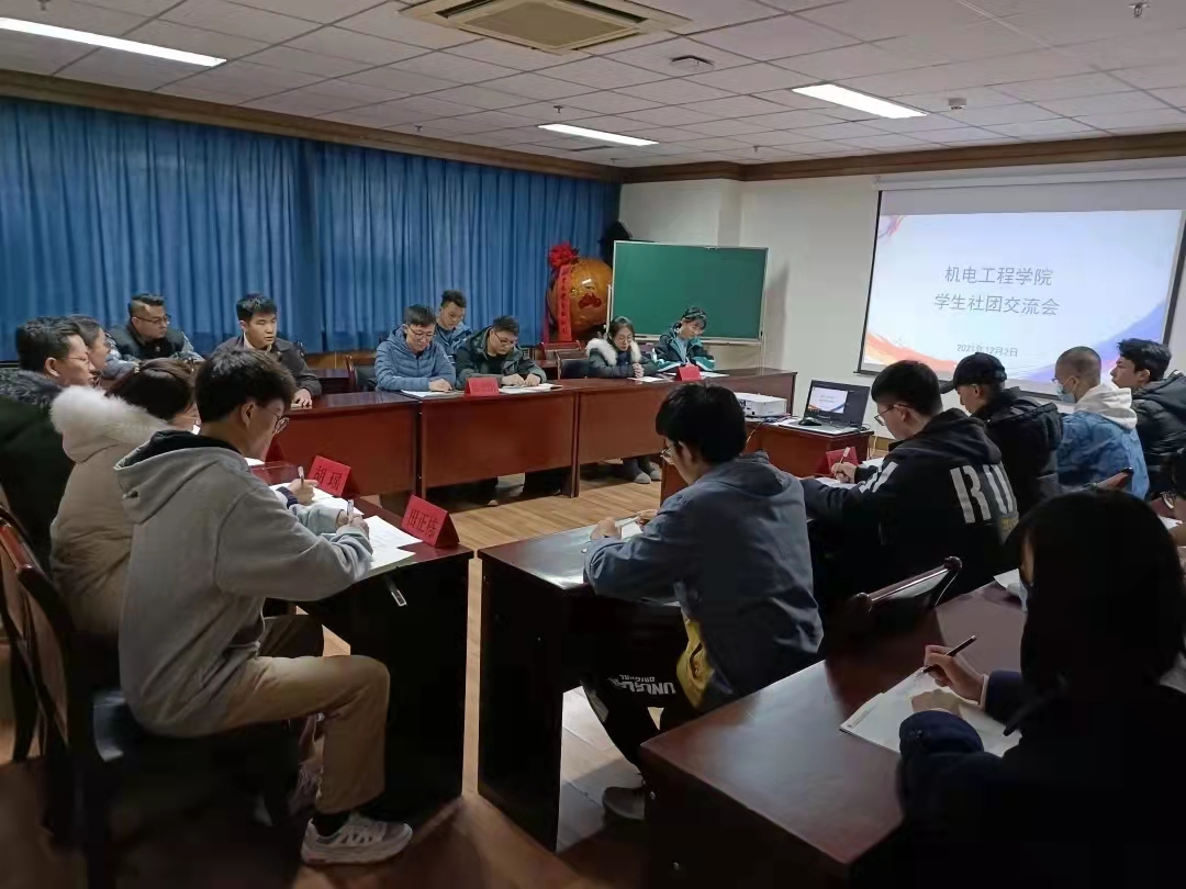 为了进一步加强我院学生社团建设,切实发挥社团组织的作用,2021年12月3日下午,机电工程学院在尚德楼1724召开了学生社团交流会,学院党委副书记、副院长荀新文,学院团委副书记田正栋及各社团负责人参加了会议,会议由学院团委书记胡瑶主持。