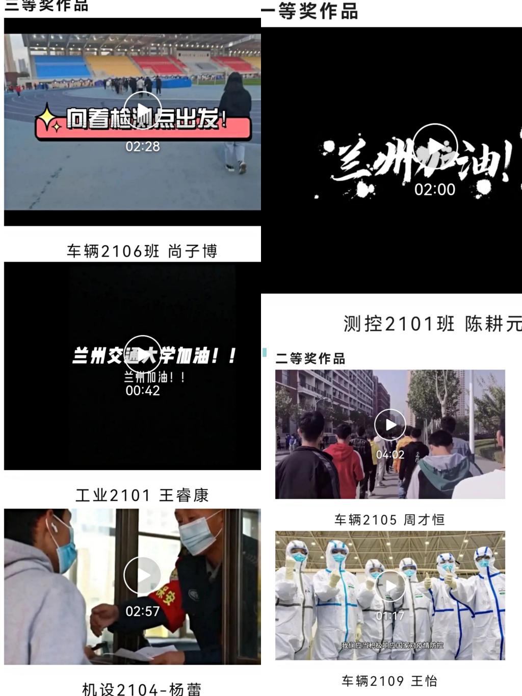 在本次抗疫微视频的征集活动中,同学们踊跃参与,并拍摄剪辑出优秀的作品。或用镜头记录下自己真挚的祝福;或发挥创意利用视频特效等为兰州加油;或通过拍摄身边的防疫细节来温暖人心……,从他们的视频中,可以清晰、直观地感受到抗疫人员的伟大与艰辛,以及机电学子面对疫情必胜的决心及内心的呼喊。