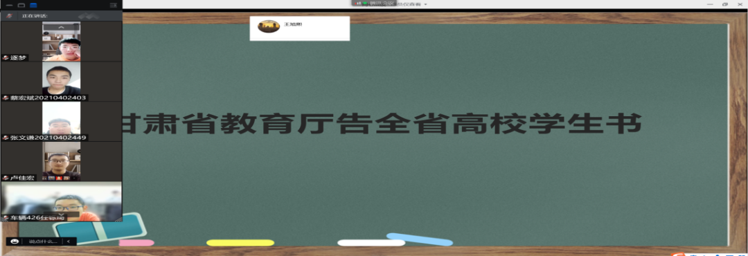 会议由团支部书记任丽佳主持,首先为同学们说明了近一个月来甘肃省疫情的严峻形势及我校在疫情防控方面的部署要求,其次给同学们在校期间如何保护自己提出两点建议:一是要减少外出,外出佩戴口罩;二是要注意宿舍卫生,进行通风消毒,保持好个人卫生。然后由宣传委员黄立辉播放三段抗击疫情短片,并请同学们思考并表达自己对于我们能为抗击疫情做出的贡献。最后,任丽佳做出总结发言,她强调在当前这样一个特殊而又紧张的时期,师生之间应该上下联动,同频共振,疫情面前非要旁观者,更无局外人,我们应该同舟共济,共克时艰,同心战疫,我们一定能赢。