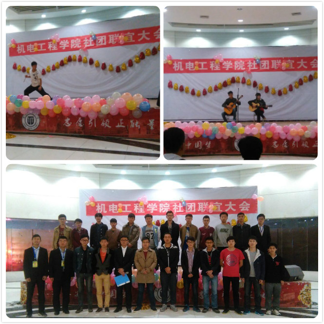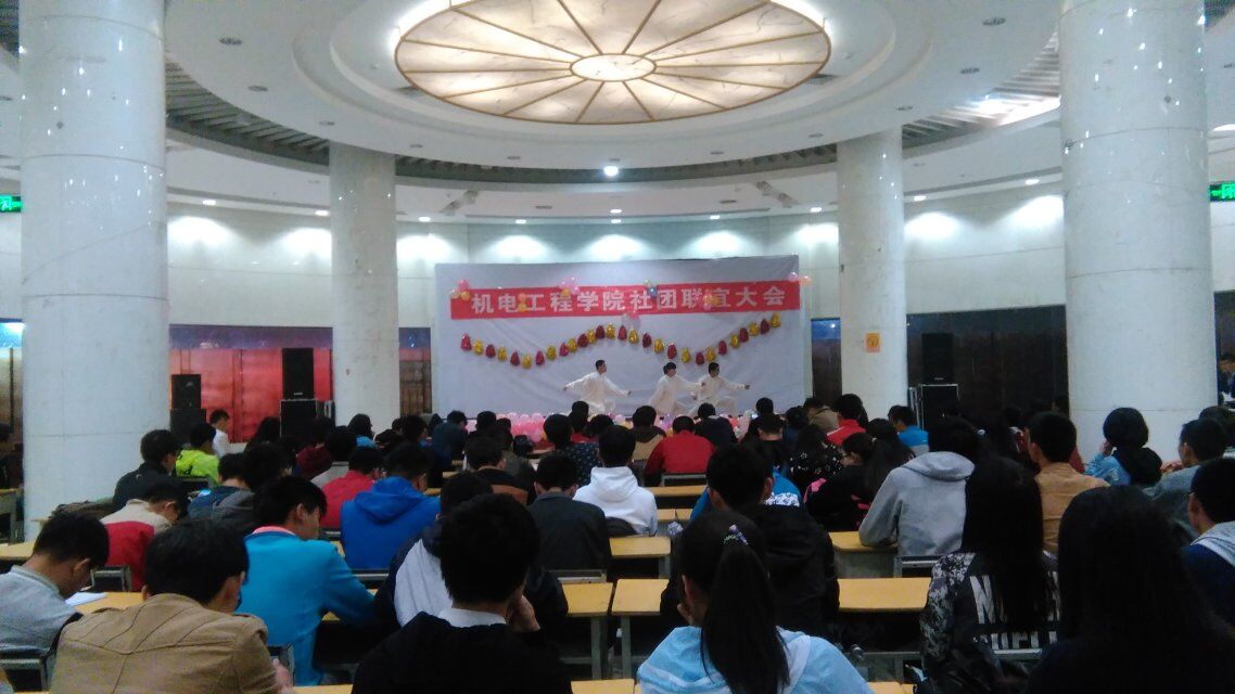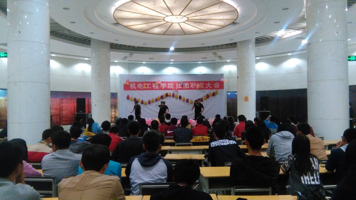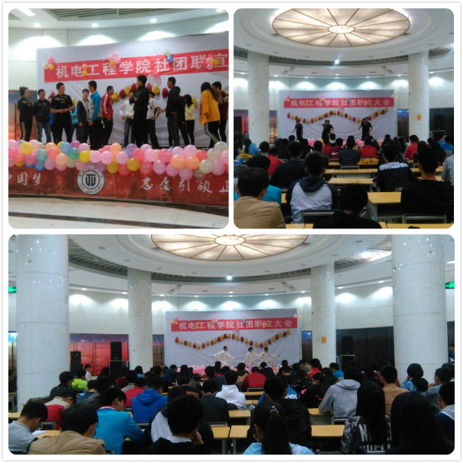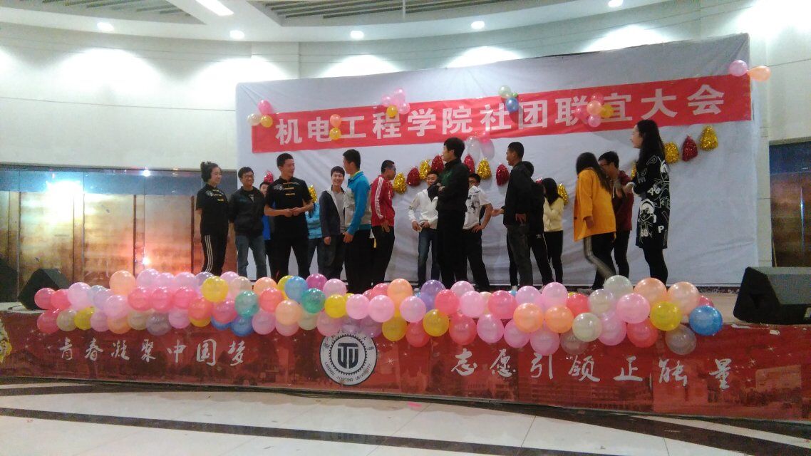 机电工程学院管理着我校武术协会、3D动力协会、机器人爱好者协会、翼轮滑协会、生存协会和机械制图协会六个学生社团。为了加强各社团之间的沟通,促进社团今后各项工作的顺利开展。我院团委在大学生活动中心举办了本次社团联谊晚会。