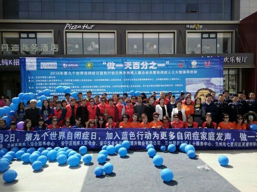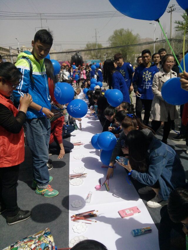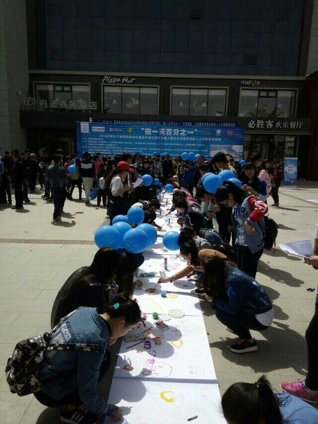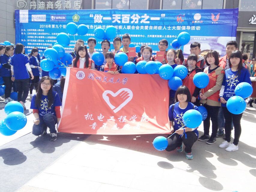为了给自闭症儿童送去关怀,为自闭症家庭送去温暖。更为了让更多的人群认识、了解、接纳、支持和帮助自闭症患者。2016年4月2日上午10点,兰交大机电青协的志愿者们排队前往金牛街,参加“关爱自闭症儿童,蓝色行动”的活动。