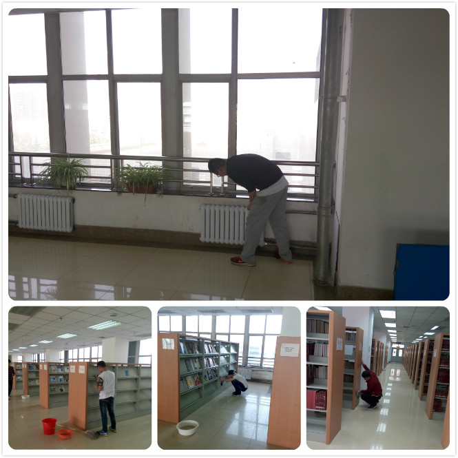 下午两点半,同学们手持清洁工具准时到达图书馆,在图书馆管理的老师的带领下,迈着激扬的步伐,向着图书馆不同的地方出发。班委将同学们分组,分配相应的任务,同学们各司其职,打扫过程中,个个干劲十足,活力四射。擦书架、扫浮尘、提水拖地,干得热火朝天。对部分分类不整的书籍,在老师指导下进行了相应的分类。经过一个多小时的努力,我们将图书馆整理得窗明几净,焕然一新,同学们满是欣慰。