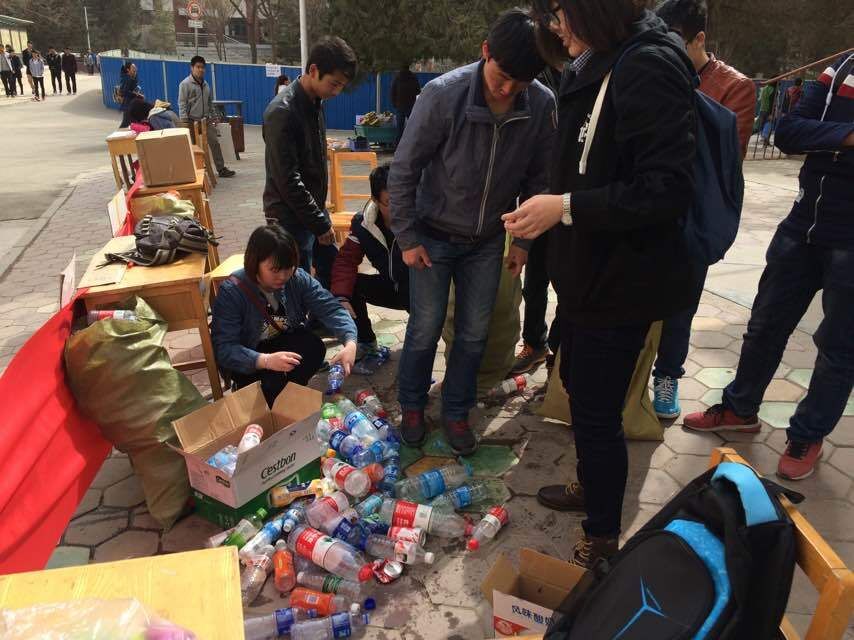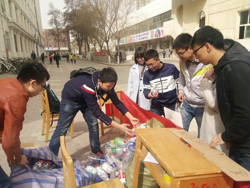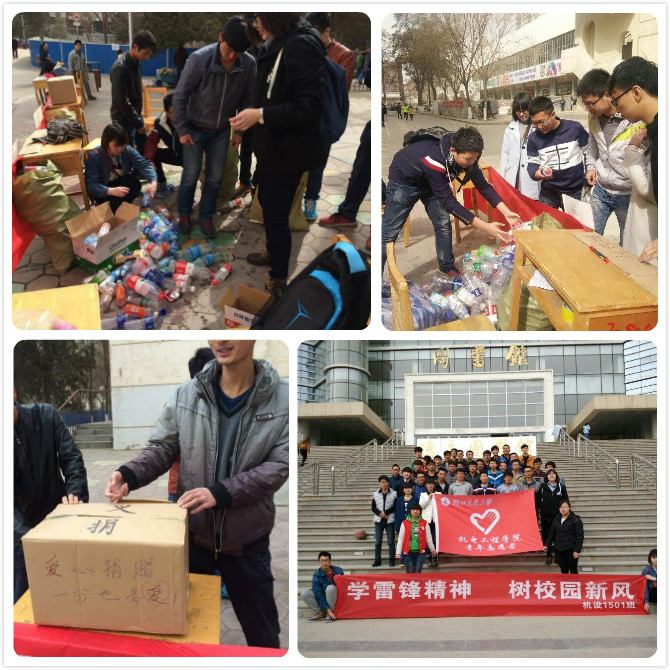 我们的活动分别在校园三处设点摆桌拉横幅让更多的人了解我们的活动——回收废旧物品赠送小礼品。既解决了校园内垃圾随意丢弃不分类的现象,也让我们在活动中发扬了一种随着时代进步而不断发展的与时俱进的雷锋精神。进到同学们的宿舍里,拿出他们丢弃的塑料瓶废纸,在校园里接下同学递来的空水瓶,收来的废品我们会变卖并将钱全部捐出,将我们的爱心传递下去。同时对于积极奉献爱心的同学们,我们也给予奖励措施。我们心中热情的花朵在三月的校园里绽放,传递着经久不衰的雷锋精神!