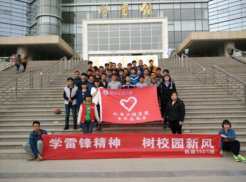 值雷锋月到来之际,机电工程学院机械设计制造及其自动化1501班在312日在机电工程学院青年志愿者协会的帮助下完成了雷锋月系列志愿服务活动。