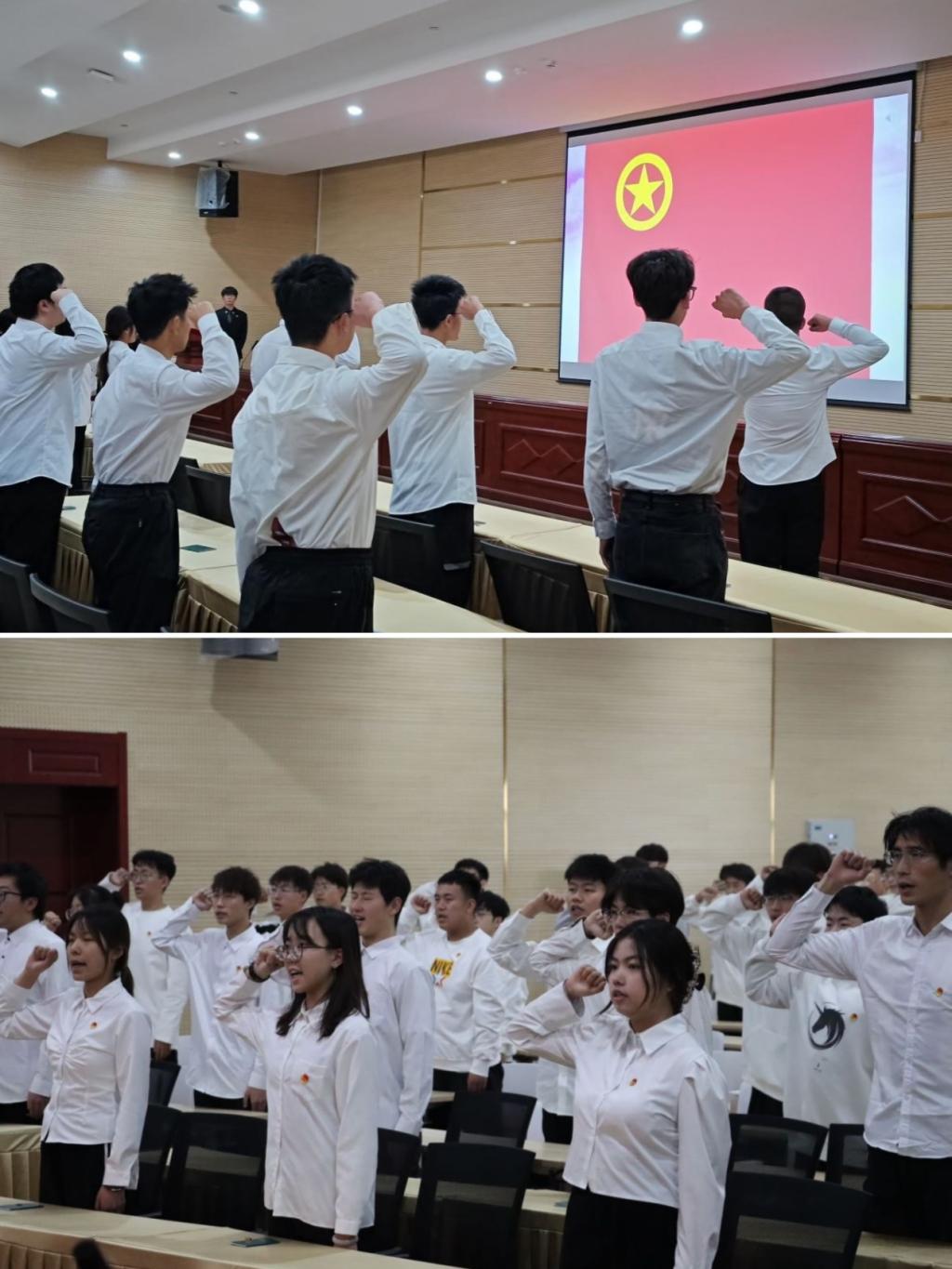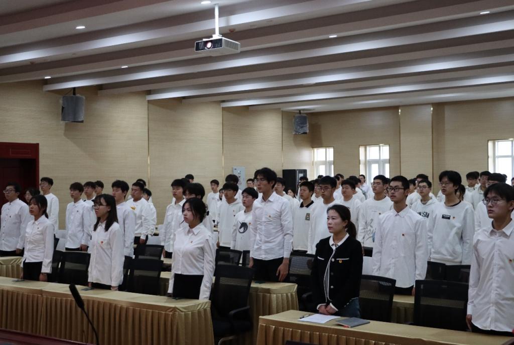 学院团委组织委员张乐飞带领新老团员青年进行了宣誓。全体团员青年紧握右拳,在团旗下庄严宣誓,“我志愿加入中国共产主义青年团,坚决拥护中国共产党的领导,遵守团的章程,执行团的决议,履行团员义务,严守团的纪律,勤奋学习,积极工作,吃苦在前,享受在后,为共产主义事业而奋斗!”他们朝气蓬勃,目光坚定,发出了铿锵有力的誓言,坚定表明了为共产主义事业而奋斗的理想信念。