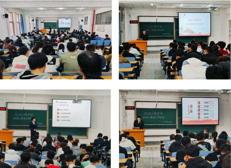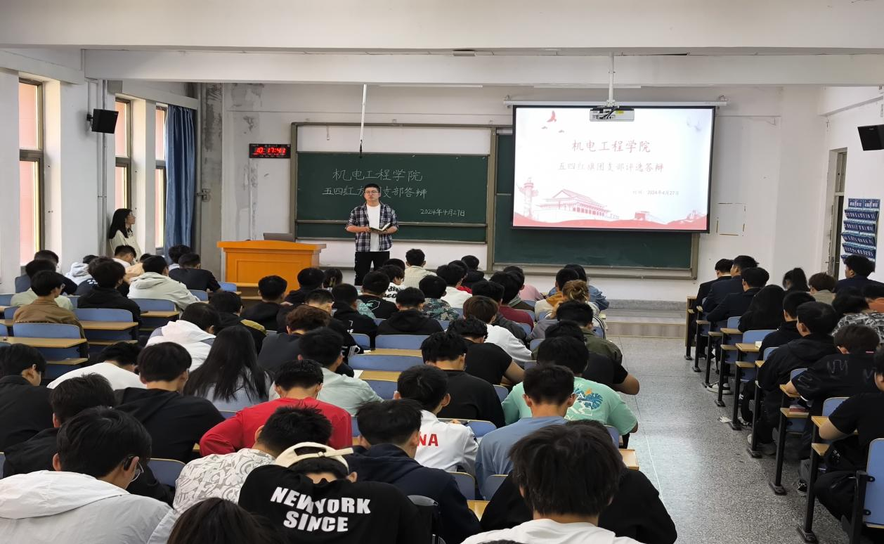 为全面学习贯彻习近平总书记关于青年工作的重要思想,深入学习党的二十大和二十届二中全会精神,学深悟透习近平总书记关于青年工作的重要思想,进一步加强学院团干部队伍建设,坚持从严治团,夯实基层基础,强化思想引领、提升学院团干部的理论素养和实践能力,增强基层团支部的组织力、凝聚力,4月27日,机电工程学院团委在九教1502室组织开展了“传承红色基因 挺膺青春担当”五四红旗团支部评选答辩活动。机电工程学院学生组织负责人张乐飞、陈文智、廖敏臻,2021级、2022级、2023级全体团支委,团委组织部全体工作人员及部分2023级学生代表共计150余人参加了此次评选答辩活动。