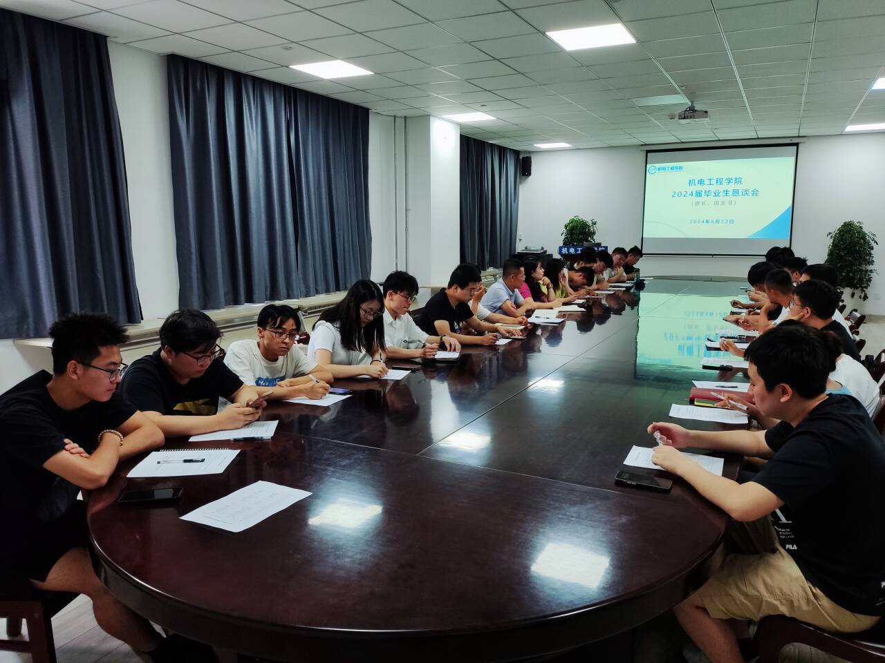 学院高度重视毕业生恳谈会,精心策划、认真准备,分层次分类别召开了团学干部、班长、团支书、学习委员、组织委员、学生助理等多场恳谈会,涵盖了车辆工程专业、机械设计制造及其自动化专业、机械电子工程专业、能源与动力工程专业、测控技术与仪器专业、工业工程专业等6个专业的学生代表。座谈会上,学院领导和老师对2024届毕业生顺利完成学业表达了祝贺,带领大家回顾了四年大学生活,强调毕业不仅意味着形式上离开校园、步入社会,更标志着心态上的成熟与转变,为毕业生们提供了工作和社会生活方面的细心指导;鼓励毕业生代表从学风建设、校园文化、实习就业、日常教育管理服务等方面出发提出宝贵意见和建议,为学院改革发展建言献策。毕业生代表踊跃发言,各抒己见,表达了对学院、学校辛勤培养的感激之情,深情回忆了求学路上的成长与收获,并结合自身学习生活经历对学院人才培养、课程设置、实习实训、就业指导、党团建设、学生日常管理、心理健康教育、硬件设施提升等方面进行了交流发言,填写了《机电工程学院2024届毕业生教育管理服务意见收集表》。与会领导和老师认真记录了毕业生代表的发言,及时回应和解答毕业生们提出的各类问题。会后,学院将对毕业生代表提出的问题和建议认真总结梳理,反馈相关部门予以解决。