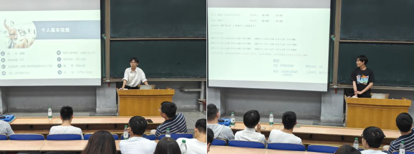 在保研经验分享方面,赵永海和陈永康两位同学就专业课学习、英语四六级、学科竞赛、院校选择等方面详细介绍分享了他们的保研过程,鼓励同学们要勇于尝试,相信自己,要勇于表现自己,机会是给有准备的人的。在考研经验分享方面,魏勇和杨艺两位同学分别结合自身经验,从考研动机、院校选择、备考过程等方面进行了详细分享。他们强调,要根据个人想法和实际情况选择考研院校,坚定个人方向,利用碎片化时间收集信息,提高学习效率。在学生工作经验分享方面,张冠勋、陈勇和王海龙三位同学分享了自己在学院及学校的工作经历,从参加学生组织的初衷、在工作中遇到的挑战以及工作中所收获的成果等方面与大家进行分享交流,以自身的工作经历展示在学生工作中的收获与成长。在考公经验分享方面,史元朗同学从笔试备考经验、考试时间轴、面试介绍、资源分享等方面进行分享。建议同学们利用网络资源寻找相关网课,拓宽面试思维,并介绍了详细的面试流程。在班级骨干经验分享方面,巩子诚同学就在班级中的工作与成绩成果进行了班级骨干经验的分享交流,强调思想道德、优良班风以及特色志愿活动在建设班集体时起到的重要作用。活动现场,同学们踊跃交流,分享者们对现场同学提出的问题进行了详细解答。
