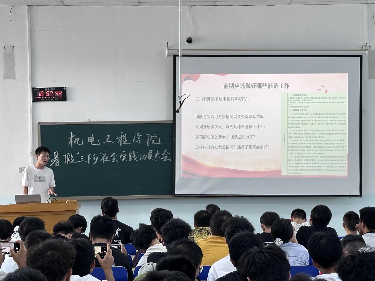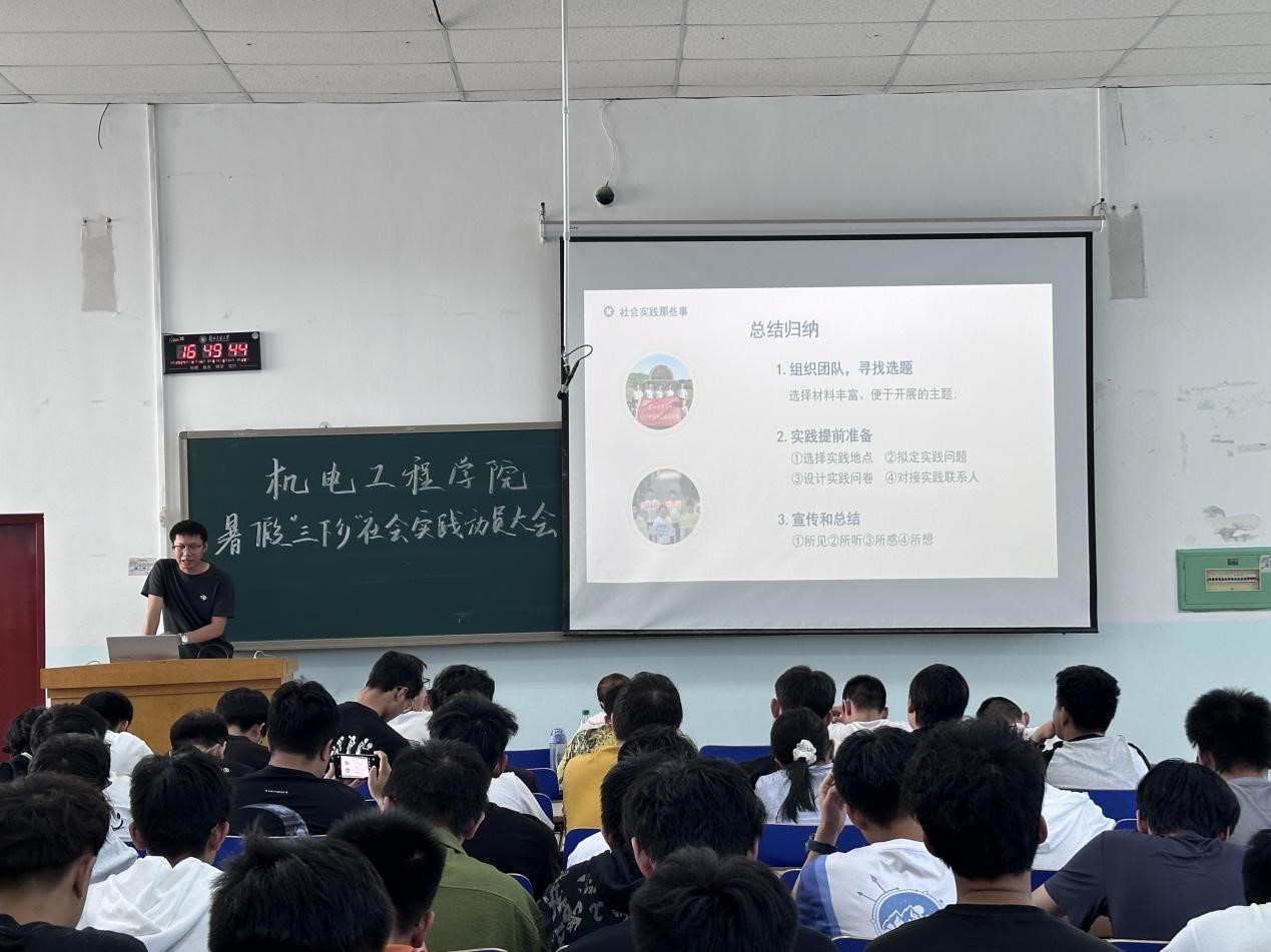 本次动员大会吹响了2024年大学生暑期社会实践的号角,明确了学院关于2024年暑期社会实践活动的具体要求,进一步激发了机电学子投身实践的热情,坚定了服务社会、勇担社会责任的意志,为今年暑期“三下乡”社会实践活动的顺利开展奠定了坚实基础。希望机电学子明确实践方向,端正实践态度,做好充足准备,结合专业特色、发挥自身特长,开展生动扎实的社会实践活动,在实践中受教育、长才干、作贡献,展现机电学子的青春风采,在社会大课堂中践行青春誓言。