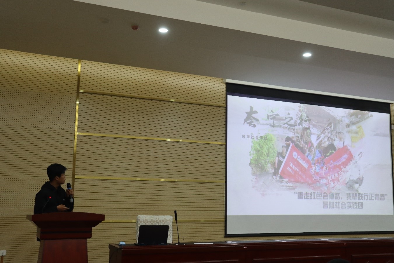 暑期“三下乡”社会实践团队负责人以传承红色精神、助力乡村振兴、感悟祖国发展变化、投身基层建设、服务家乡发展为宣讲主线,以PPT、图片、视频相结合的方式依次展示了他们丰富多彩的实践过程,叙述了他们行路于广袤大地,思悟于实践之途的点点滴滴。他们以务实的作风、扎实的实践过程、优异的实践成果感召学院更多的青年学子汲取奋进力量,以实践增长才干,以行动书写青春,在学思践悟中筑牢青年思想根基,在扎实服务中与群众更贴近,用青春践行初心使命,以青春之名在祖国大地绽放梦想。
