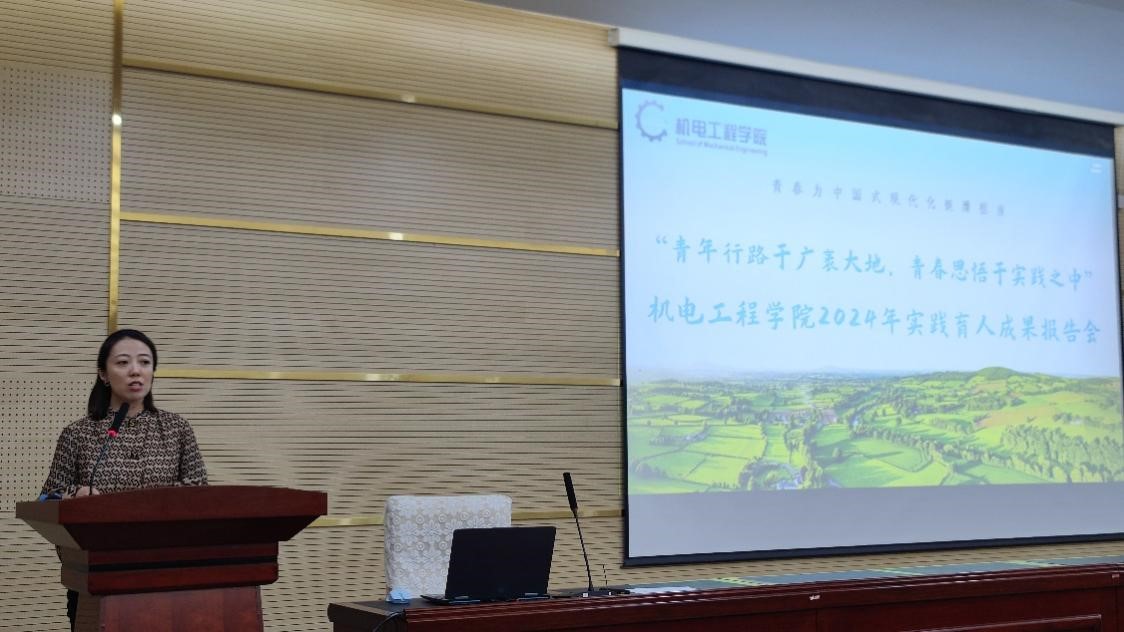 报告会最后,学院团委书记胡瑶老师做总结发言,她充分肯定了实践团成员们的精彩分享;她指出,实践育人是落实立德树人根本任务的关键环节,是高校思想政治工作体系的有机组成,是培养担当民族复兴大任时代新人的有效途径,希望同学们能够深刻领悟到社会实践优秀团队、优秀个人所展现出的投身祖国建设、积极服务人民的精神,并呼吁同学们积极参与社会实践活动,将所学的理论知识与社会实践有机结合,在社会课堂中受教育、长才干、作贡献,在实践中树立家国情怀,展现青春作为,擦亮青春底色,践行青春诺言,立大志、明大德、成大才、担大任,用实干奋力书写青春为中国式现代化挺膺担当新篇章。
