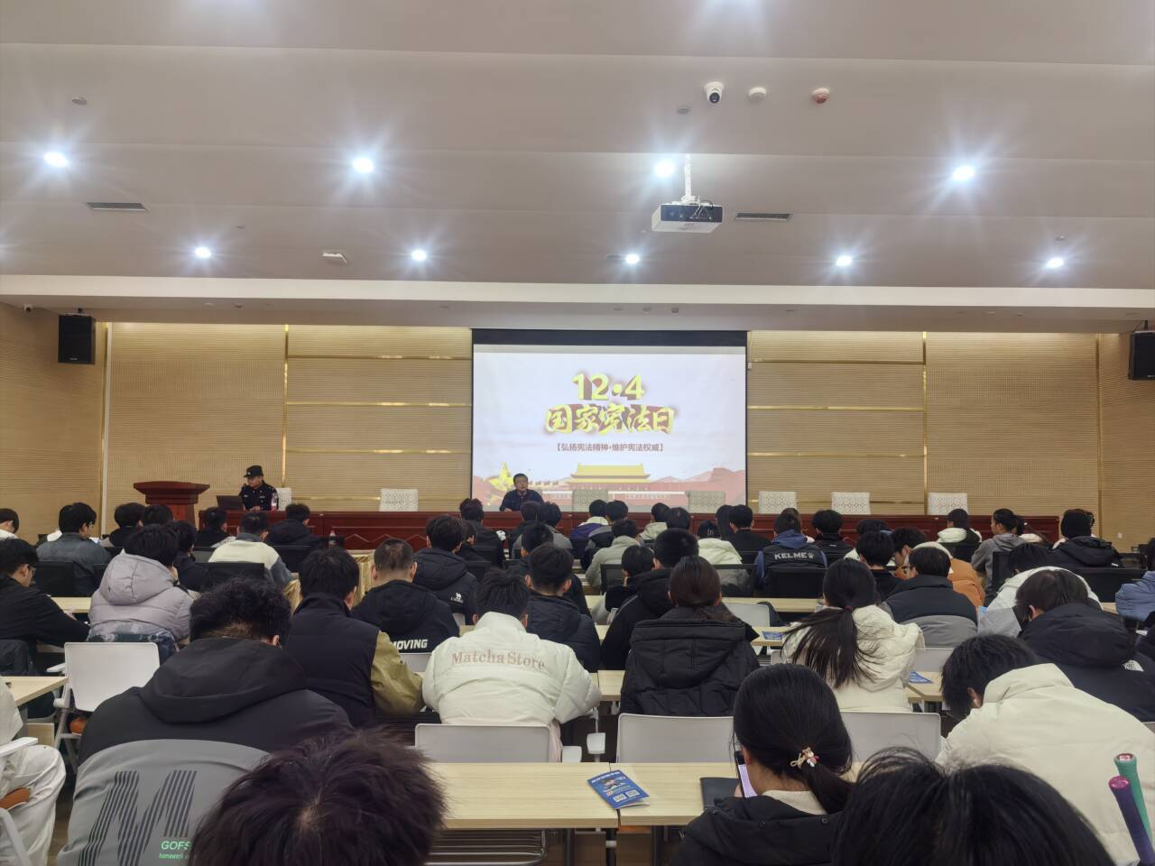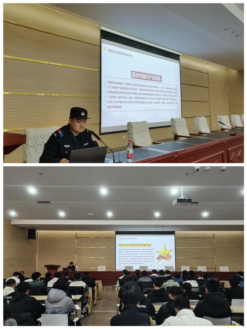 2024年12月4日是我国第十一个国家宪法日,为深入贯彻党的二十大精神和习近平法治思想,学院特别邀请校党委保卫工作部及安宁西路派出所,举办了一场以“传承宪法文化,弘扬法治精神”为主题的法治宣讲专题讲座。此次活动由学院党委副书记、副院长朱俊敏主持,安宁西路派出所颉警官、张警官进行了宣讲,学院各班级防网络诈骗宣传员、班长、团支书以及团委学生干部等积极聆听了讲座。