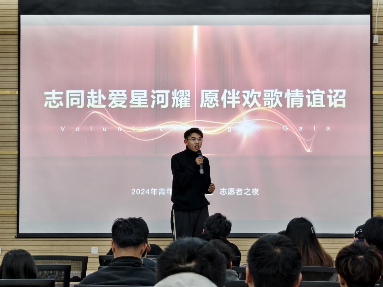 在第三十九个国际志愿者日来临之际,为弘扬“奉献、友爱、互助、进步”的志愿精神,促进学院志愿者之间的交流,营造和谐温暖的协会氛围,2024年12月14日,学院青年志愿者协会精心筹备并举办了“志愿者之夜”主题晚会。这场晚会是志愿者们的专属盛宴,是爱与奉献交相辉映的璀璨舞台。