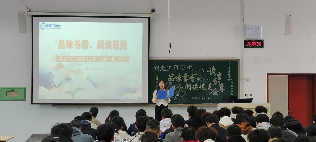 为拓宽学生阅读视野,推进校园精神文明建设,进一步营造“爱读书、善读书、读好书”的浓厚阅读氛围,3月22日下午3:00,学院在第七教学楼1801教室举办了第四届第十九期读书分享会,2024级180余名学生参与了此次分享会,分享会由李悦同学主持。