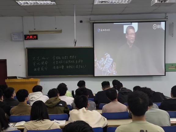 交流会尾声,胡瑶老师提及白岩松的演讲《平静与焦虑》带来的启发,带领学员共同观看演讲视频。演讲中关于在快节奏生活中保持平静心态、正确应对焦虑的深刻见解让学员们受益良多。观看结束后,胡瑶老师在黑板上写下了对同学们的期望:“拿得起,放得下,想得开。希望同学们珍惜时光,多读书,保持平静,继续前行,投资自己。”字里行间饱含对学员的深切关怀与殷切期望。