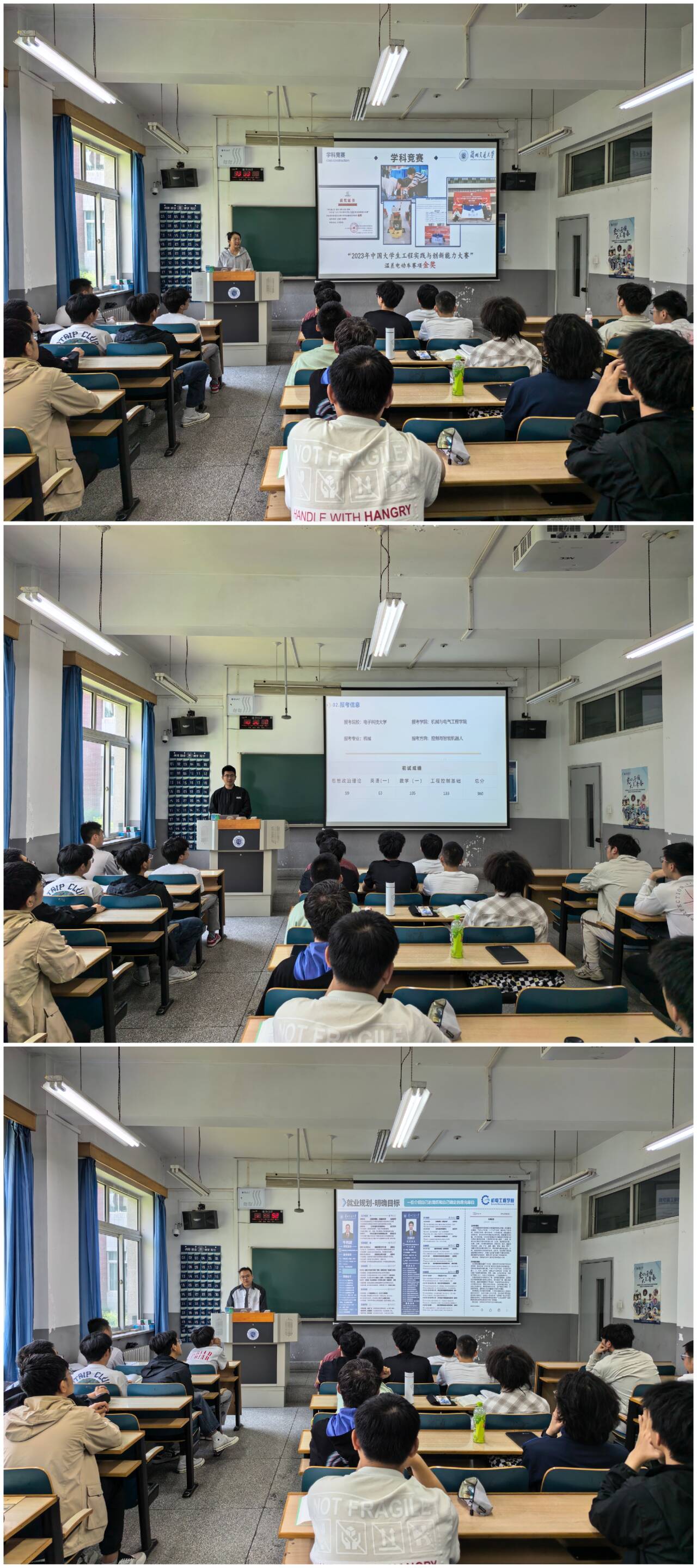 经验分享会上,2021级卓越工程师班的三位优秀学子结合自身学习生活经历,为同学们带来了一场内容详实、干货满满的学习盛宴。 张增同学以优异的学业成绩和丰富的项目实践经验为依托,重点围绕专业课程学习展开了分享。谈及《机械原理》《机电传动控制》等核心课程时,她强调学习不应局限于课本理论,而要通过实际案例分析、物理模型构建和动手实践,实现对知识的深度内化。同时,她建议充分借助线上优质资源,拓宽学习维度,完善自身知识体系。此外,张增同学还毫无保留地分享了保研经验,为有深造意向的同学提供了清晰的行动指南。高东杰同学以自身成长轨迹为线索,系统梳理了学科竞赛、科研项目实践及考研策略。他将竞赛全流程精细化拆解,从团队组建的科学分工、选题策划的创新思维,到设计制作的技术突破、现场答辩的展示技巧,用生动案例还原项目落地全过程。他着重指出,学科竞赛不仅是锤炼专业技能的熔炉,更是培养团队协作与沟通能力的绝佳平台,在不断试错中磨砺出的问题解决能力,将为科研探索与考研之路奠定坚实基础。他鼓励同学们积极投身实践,以赛促学、以研固本,为未来发展积累核心优势。牛伟健同学结合自身求职经验,为同学们带来极具实操性的就业指导。他围绕求职准备、简历优化、面试技巧等关键环节展开深度剖析,提醒同学们从大三起就应密切关注行业动态,依据目标岗位需求定向提升专业能力与综合素养。在简历制作方面,他特别强调要精准提炼个人优势,重点展示相关实践经历,并用量化成果增强说服力,从而在求职竞争中脱颖而出。