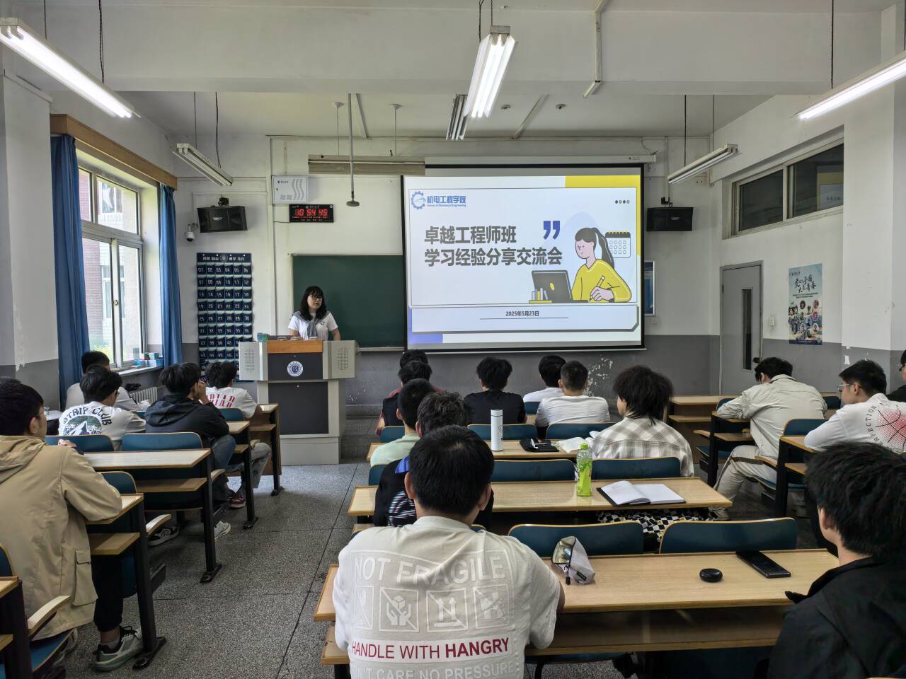 为深化卓越工程师班人才培养模式改革创新,搭建学生学习交流平台,充分发挥传帮带作用,2025年5月23日,机电工程学院于第四教学楼130教室举办卓越工程师班学习经验分享交流会。学院学生办公室主任张晓丽、2021级卓越工程师班优秀学生代表,以及2024级卓越工程师班全体学生齐聚一堂,共话学习成长。