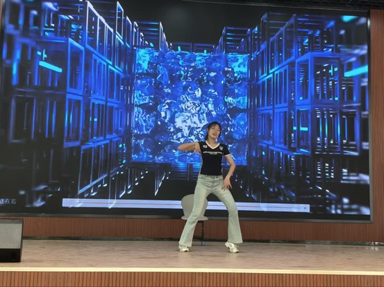 测控2401班以《whiplash》致敬经典,舞蹈融合爵士与现代舞,舞者肢体如弹簧般收放自如,急促鼓点中穿插着旋转与跪地动作,用力量感舞姿诠释对热爱的极致追求。