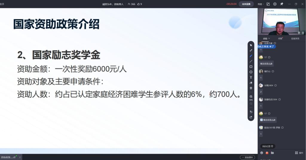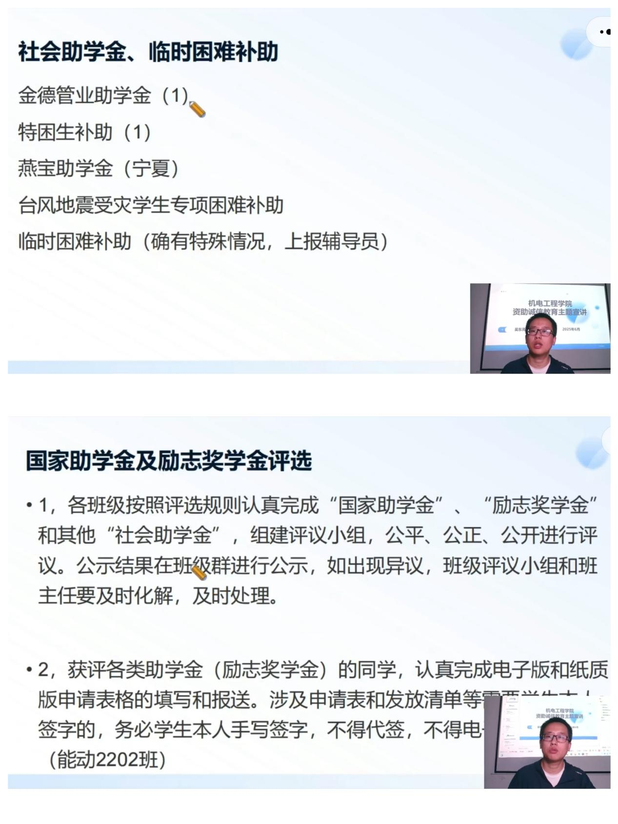 宣讲会上,辅导员吴东亮详细解读了《兰州交通大学家庭经济困难学生认定方法》《兰州交通大学本专科生国家助学金评审管理办法》《兰州交通大学本专科生国家励志奖学金评审管理办法》等资助政策相关文件,系统讲解了各项资助政策的资助金额、资助对象以及主要申请条件和申请程序等内容,传递了党和国家对家庭经济困难学生的关怀,并就各项资助项目的评选办法、评选要求等做了详细说明,帮助同学们全面了解国家资助体系。