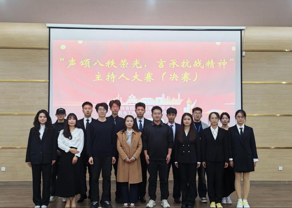 为深入学习贯彻习近平总书记关于传承红色基因的重要论述,将思政教育与校园文化建设深度融合,由共青团兰州交通大学委员会主办,共青团机电工程学院委员会承办的“声颂八秩荣光,言承抗战精神”主持人大赛,经过数日的精心筹备与初赛和决赛两轮激烈角逐,于2025年10月16日在笃行楼五楼中翼报告厅圆满落幕。机电工程学院辅导员孟玲和石壮老师、兰州交通大学大学生艺术团主持队队长刘嘉斌、学院2023级主席团成员陈彦昭、主持礼仪部全体学生干部以及来自全校的200余名学生共同见证了这场精彩赛事。