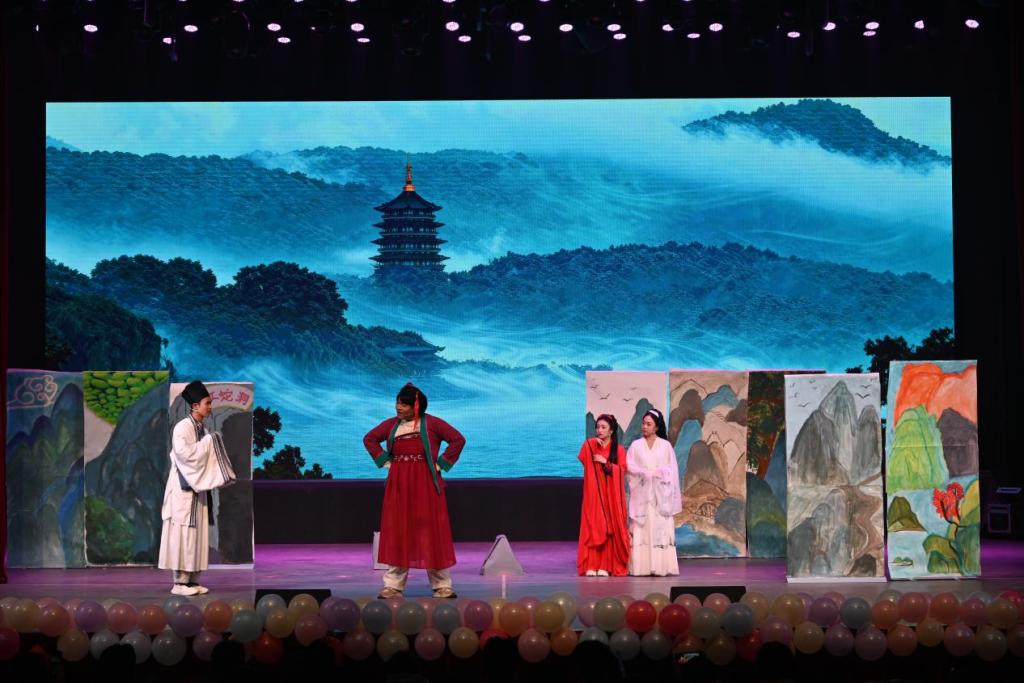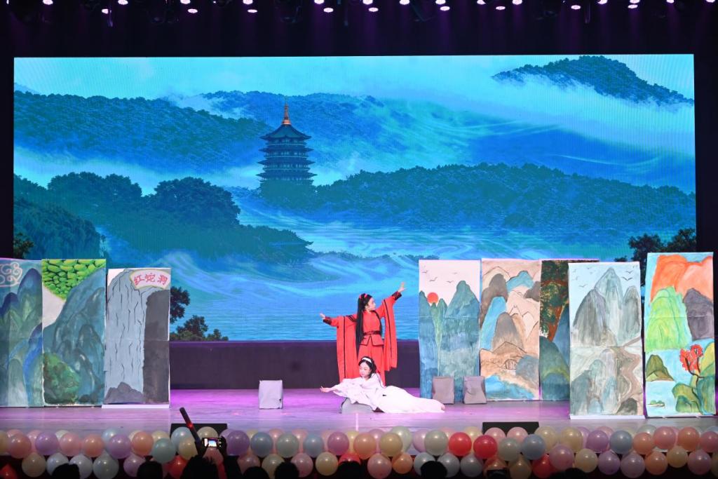 仙韵悠悠,戏幕重启。大学生艺术团带来的情景剧《青城山上》以清幽山景为底色,串联起爱情与亲情的温暖故事。剧中,小红蛇与人类相恋,妹妹小白蛇不仅默默守护姐姐的情感,更在相处中逐渐认可了这位人类伴侣。姐妹间彼此牵挂、相互支持的深厚情谊,与跨越种族的爱恋交织,在细腻的情节里,将山间的温情与真挚的情感展现得格外动人。