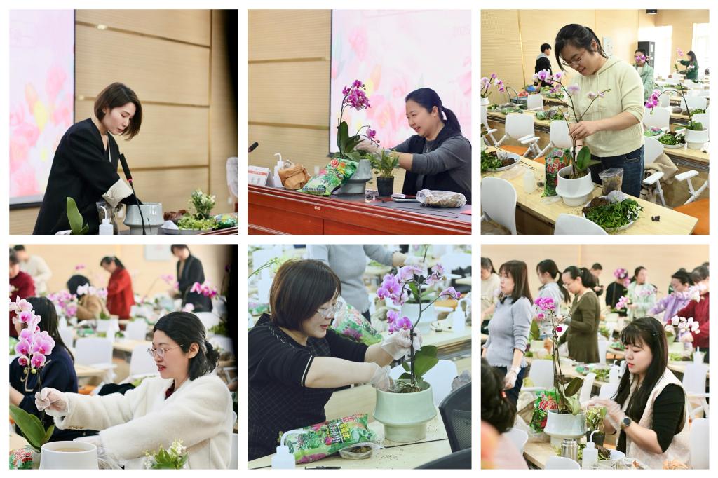 活动现场花香四溢,气氛温馨。花艺师为大家讲解了花卉的种类、花语寓意、色彩搭配等知识,并现场演示了插花的技巧和步骤。在花艺师的指导下,老师们充分发挥想象力和创造力,用心构思、精心搭配,创作出一件件春意盎然、赏心悦目的插花作品。插花结束后,学院女教职工们围坐在一起品味茶香,分享自己插花的心得和体会,交流工作中的经验与收获,讲述家庭生活中的趣事与感动,现场欢声笑语不断,气氛轻松而融洽。平日里忙碌在工作一线的女同胞们,在这个温馨的时刻,暂时放下了工作的疲惫,一起细品芬芳的花香和淡雅的茶香,沉浸在幽香扑鼻、回甘悠长的香气里,尽情享受着快乐的时光。活动尾声,大家脸上洋溢着幸福的笑容,共同合影留念,定格下温馨美好的瞬间。