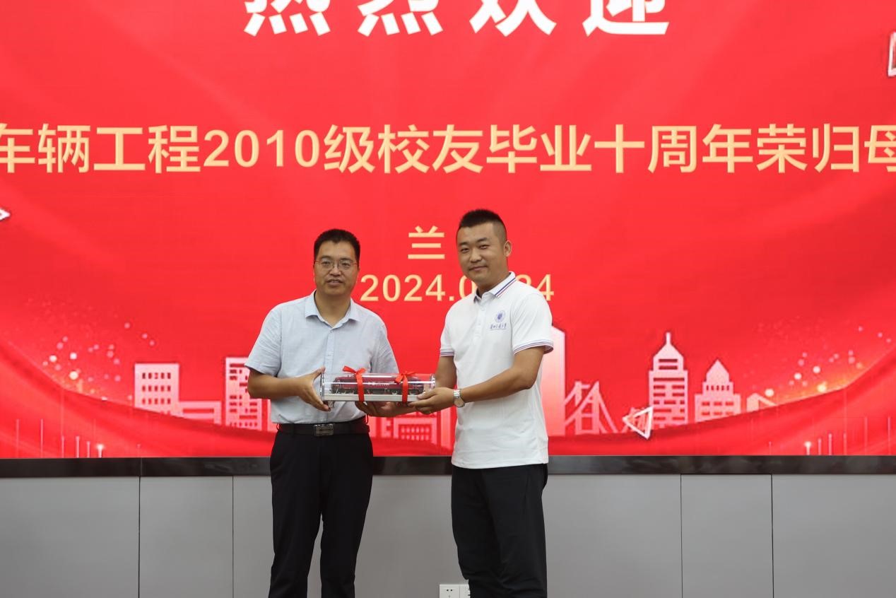 座谈会上,车辆工程104班魏永拓代表返校校友向母院捐赠了一款“和谐D3D型电力机车模型”作为纪念礼物,表达对母校母院的深切感谢和美好祝愿。