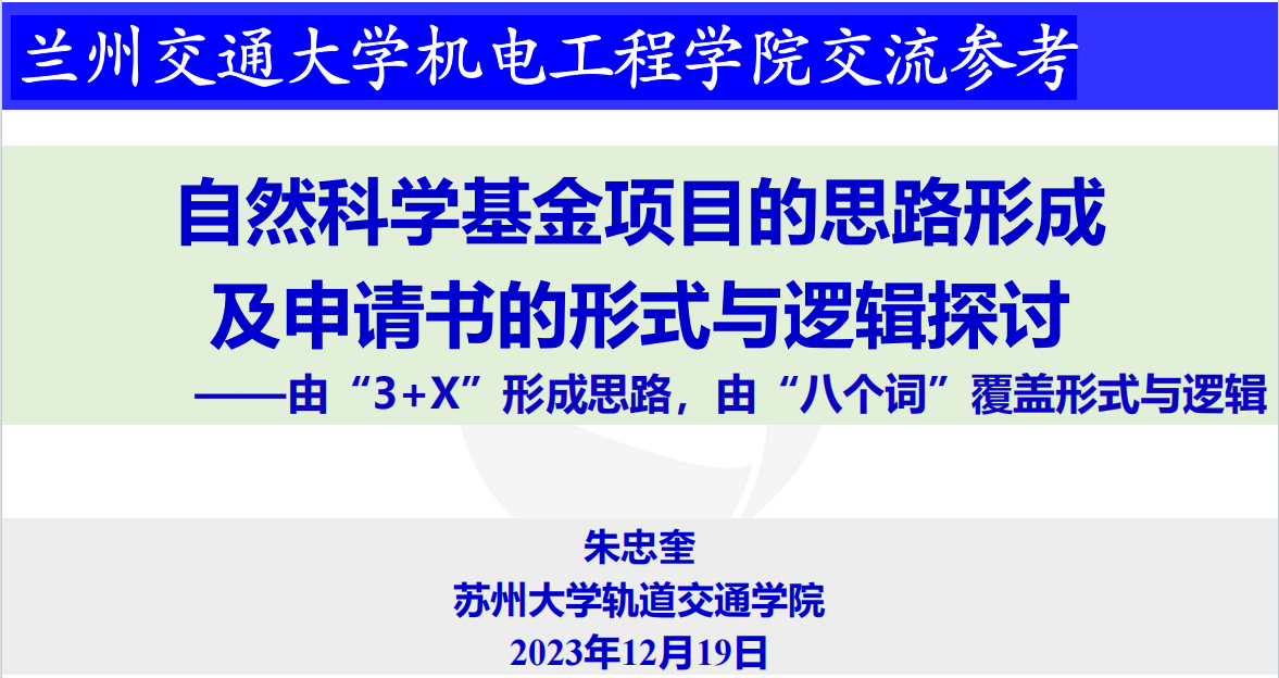 为进一步做好学院的国家自然基金申报工作,提升项目申报书质量,2023年12月19日下午2:30,受学院邀请,苏州大学朱忠奎教授为我院教师作了题为《自然科学基金项目的思路形成及申请书的形式与逻辑探讨》专题辅导讲座。学院领导、科研办公室人员及教师40余人参加讲座,讲座由机电工程学院副院长高全福主持。