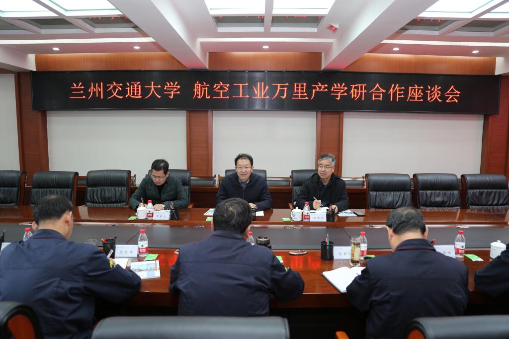座谈会上,航空工业万里公司党委书记、董事长晁世元对苏程一行的到来表示欢迎,对公司的发展历程、科研生产、人才政策、产学研用等情况进行了详细介绍。晁世元表示,兰州交通大学与航空工业万里公司长久以来建立了良好的合作关系,希望继续发挥双方特色,优势互补,携手打造高水平的创新平台,增强校企协同的动力,积极构建产学研用深度融合的校企合作。