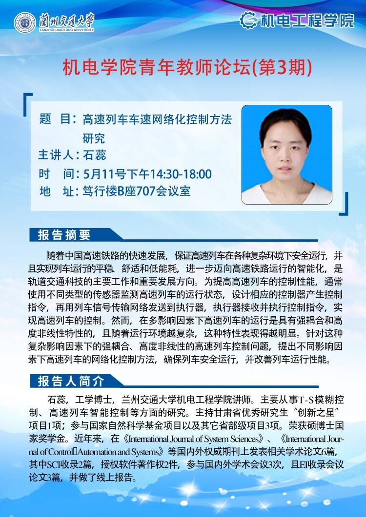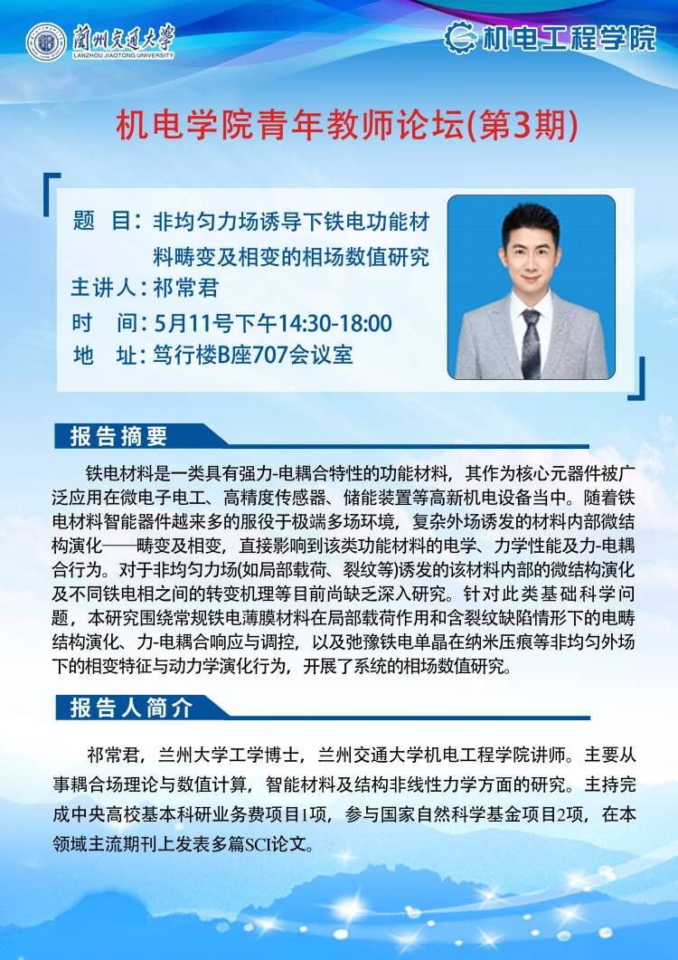 为进一步加强青年教师之间的学术交流,提升青年教师教学科研能力,5月11日下午,机电学院在笃行楼707会议室举办了春季学期第三期青年教师学术论坛。论坛由科研办公室主任孟佳东主持,祁常君博士、石蕊博士和张明博士主讲。机电学院相关研究方向教师、研究生等参加了本次论坛。
