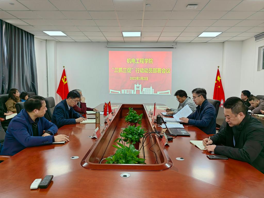 3月2日下午,机电工程学院召开“三抓三促”行动动员部署会议,深入学习贯彻落实甘肃省“三抓三促”行动动员部署会议和省教育系统“三抓三促”行动动员部署会议精神,深入解读学校“三抓三促”实施行动方案,安排部署学院“三抓三促”行动。学院领导班子成员、各科室、各系主任及教工党支部书记参加会议,会议由学院党委书记曾潮洁主持。