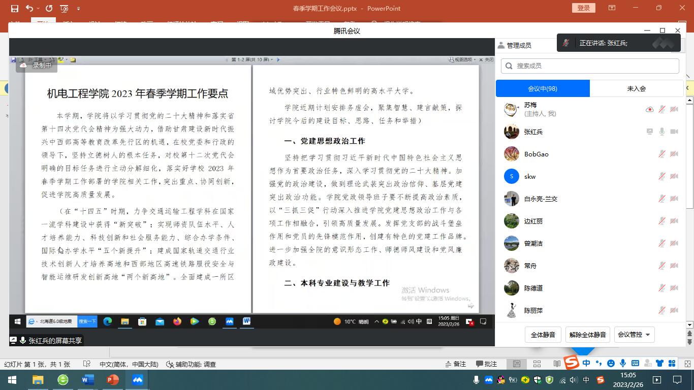 领导班子其他成员也分别就2023年春季学期学生、科研、教学、研究生、实验室等工作进行了专项梳理和部署。