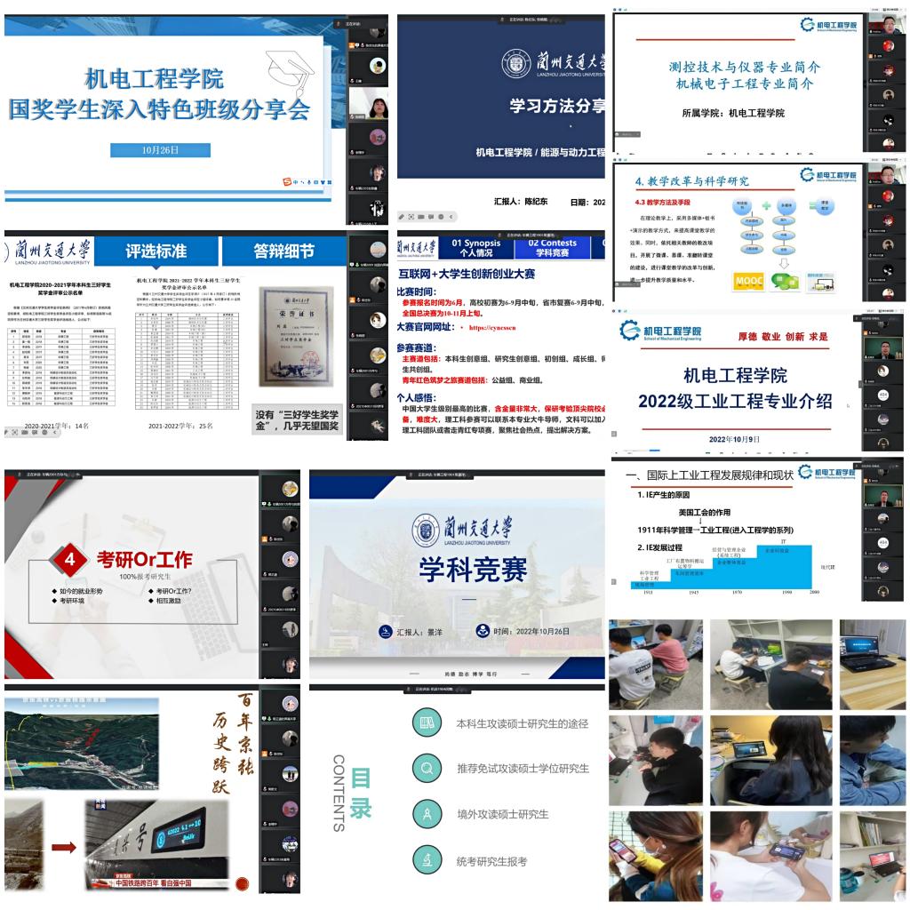 ——创新专业意识教育,讲好“目标规划”课。为帮助新生更快适应大学生活,制定科学的学业规划,为学生成长发展坚定良好基础,促进教学与育人相结合。一是学院组织安排专业系主任分班级为新生举行专业教育主题讲座,加深新生专业认知,提升新生专业涵养,增强新生专业自信,帮助学生制定科学的发展规划;二是邀请2022年国家奖学金获得者、保研学子以专题报告形式开展学习经验分享会,发挥优秀学子榜样示范和朋辈教育作用,以自己的亲身经历鼓舞人和激励人,“研”传身教,答疑解惑,辅导学生制定学业成长计划;三是组织新生参加天佑铁路主题展览馆线上科普活动—青龙桥站话铁路,加深新生对西北铁路发展历史的认识,了解西北铁路精神的历史以及兰州交大的风雨历程,增强新生对学院及学校的认同感,帮助同学们感悟交大精神,汲取奋进力量,树立远大的报国志向。