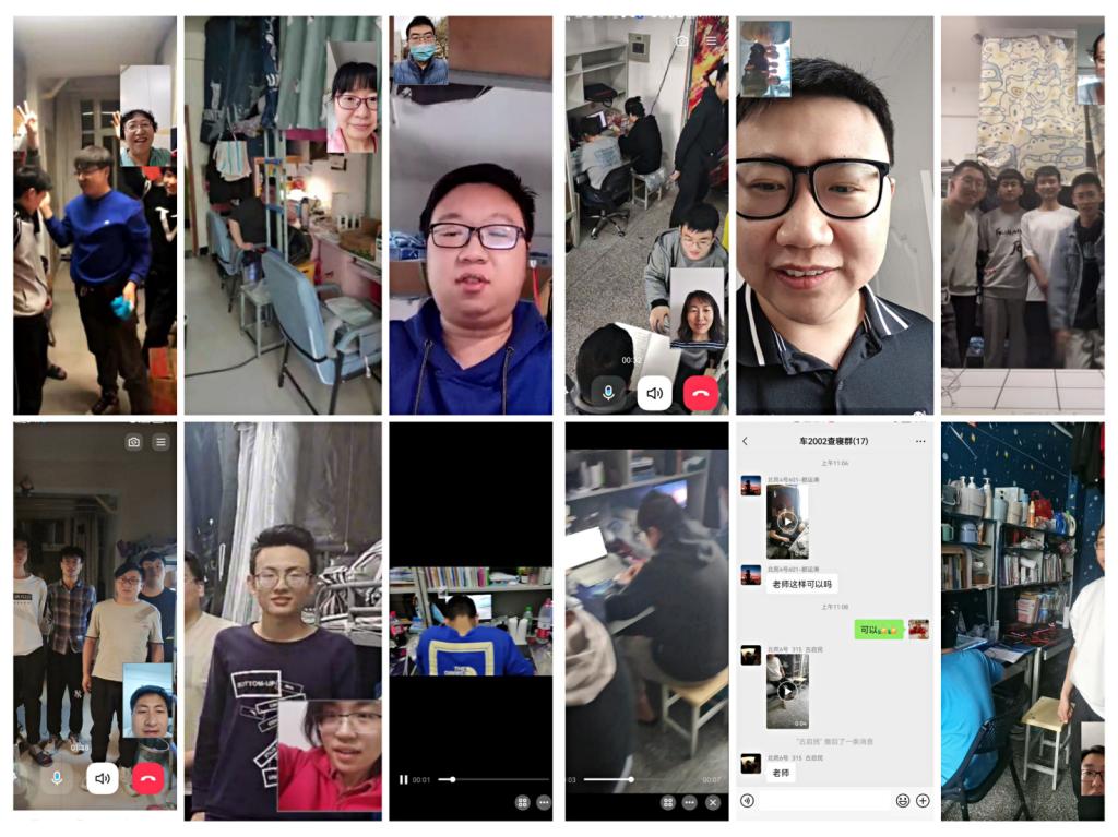班主任视频查宿。班主任每天至少2-3次的视频查寝并做好记载,采取了以下三种形式,一是宿舍长给班主任转发宿舍成员的小视屏,视频中体现了录制时间、宿舍成员归宿情况;二是班主任与班长或宿舍长视屏查宿舍;三是班主任视屏随机抽查学生在宿舍情况。通过“云端”查宿舍,也达到了班主任与学生隔空对话、隔屏交流的目的。