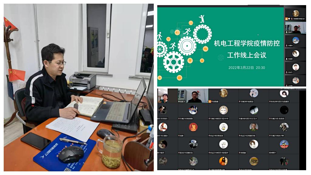为了进一步织牢织密学校学院疫情防控工作网,坚决打赢校园疫情防控狙击战,确保师生身体健康和校园安全稳定,3月22日20:30,机电工程学院通过腾讯会议组织召开了疫情防控工作专题会,学院党委副书记、副院长荀新文、学工办主任张晓丽、团委书记胡瑶、全体辅导员、班主任,学生党支部书记、副书记,各班级班长和团支书参加了会议。