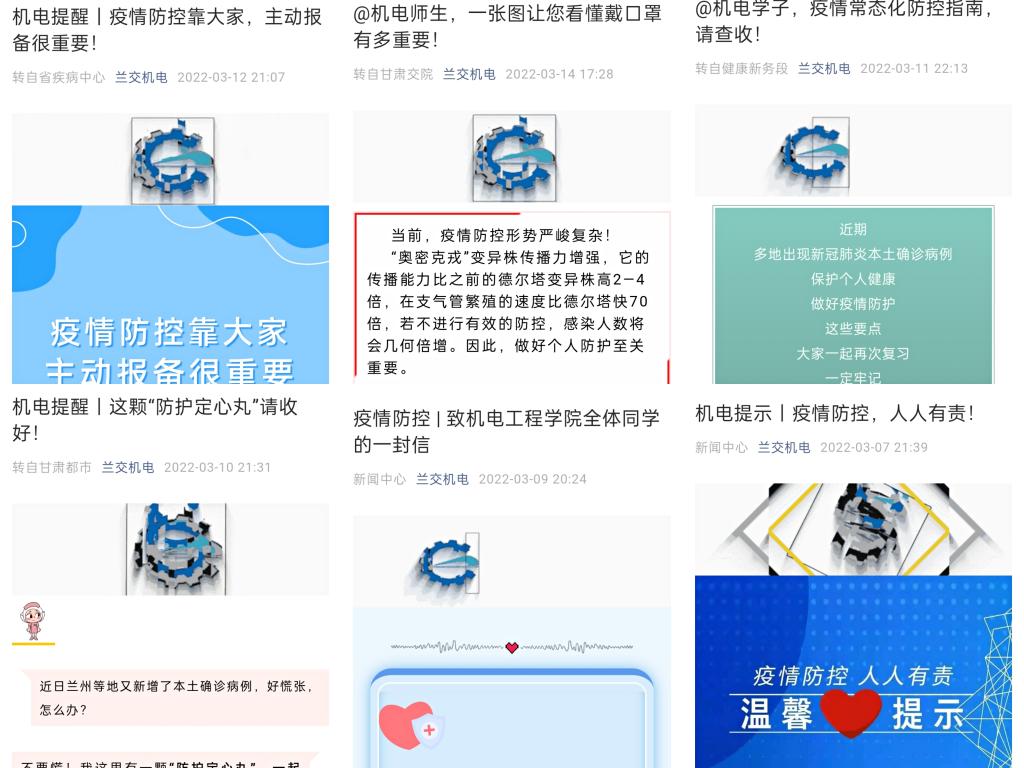 近期,全国新冠疫情多点散发且处于快速发展当中,兰州疫情形势也十分严峻。疫情就是命令,防控就是责任。机电工程学院高度重视疫情防控工作,认真贯彻落实省教育厅、兰州市以及学校疫情防控工作的总体安排和部署,把政策落在最严处,把工作做到最实处,全力保障师生生命安全和身体健康,汇聚领导班子、师生党员、学生志愿者 “三支力量”,精心下好“三步棋”,全力筑牢“战疫”安全防线,做好师生健康的“守门人”。
