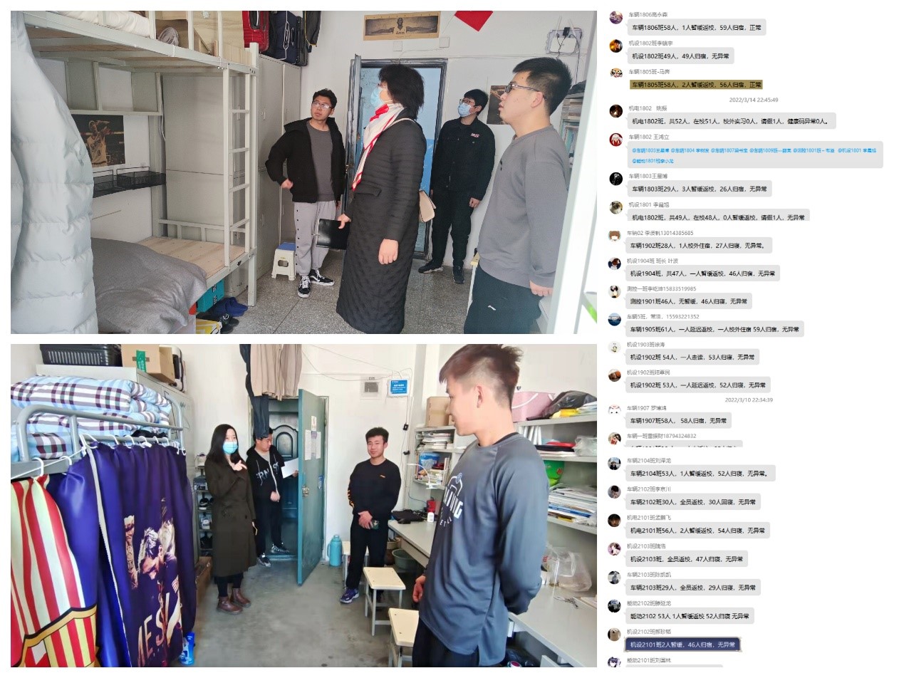 精准模块服务,构建疫情管理“关键棋”。学生工作的关键点是管理好服务好关键少数,在疫情常态化下,关键少数学生的管理和服务更是重中之重。学院分层次、分类别创建了暂缓学生返校群、留观学生管理群、黄码学生管理群、考教资学生联络群、各类信息报备群等多个管理群,直接为特殊情况的学生对标对点做好健康监测、心理疏导与服务保障工作;安排专人为校内留观学生配送餐食与生活必需品,使留观学生心中有温暖,孤单不孤独;学院主管学生副书记副院长带领辅导员、班主任深入学生课堂和宿舍大检查,提醒学生上课戴口罩、宿舍勤通风,帮助学生树立良好学习和生活习惯。
